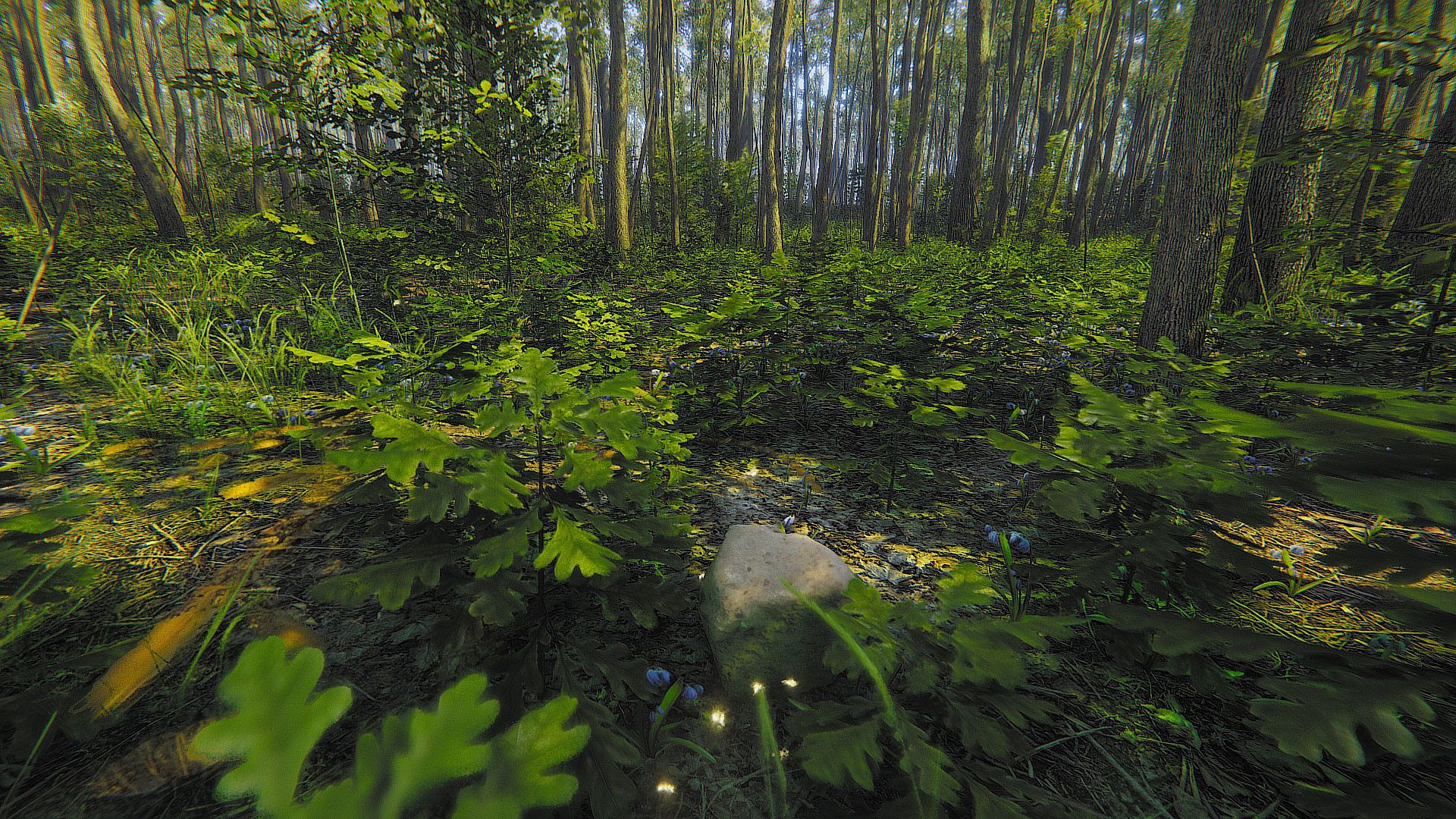 After entering the world, you are faced with a time of day and a weather somewhere in the world. You are also placed somewhere in a procedurally-generated forest being able to walk, explore and get lost completely.