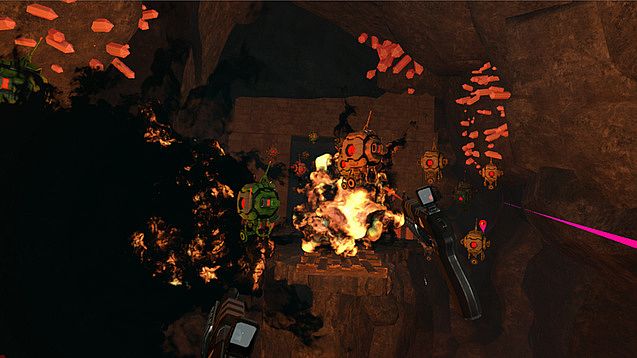 This single player VR Shooting Gallery game has three levels of difficulty. From you static vantage position it's all on you to defend your mine from being stripped by the invading forces.