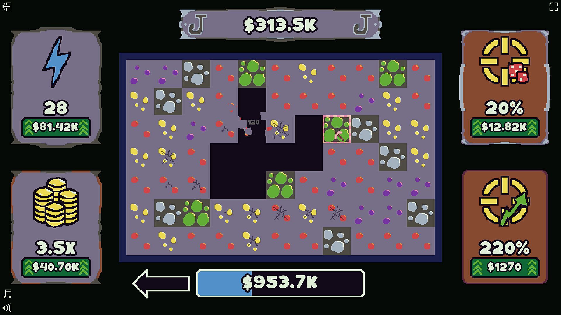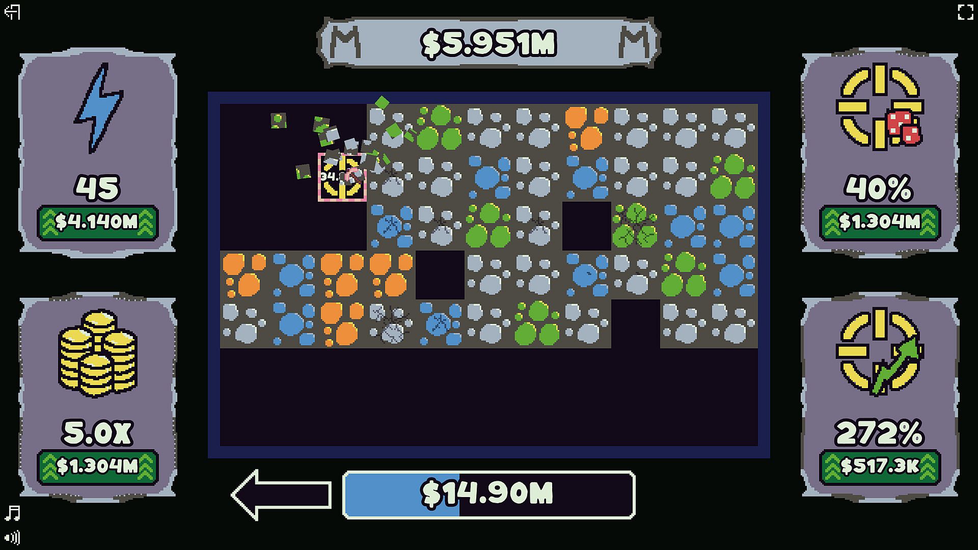 Make your pickaxe faster and faster! Increase your money multiplier, crit chance, and crit factor!
