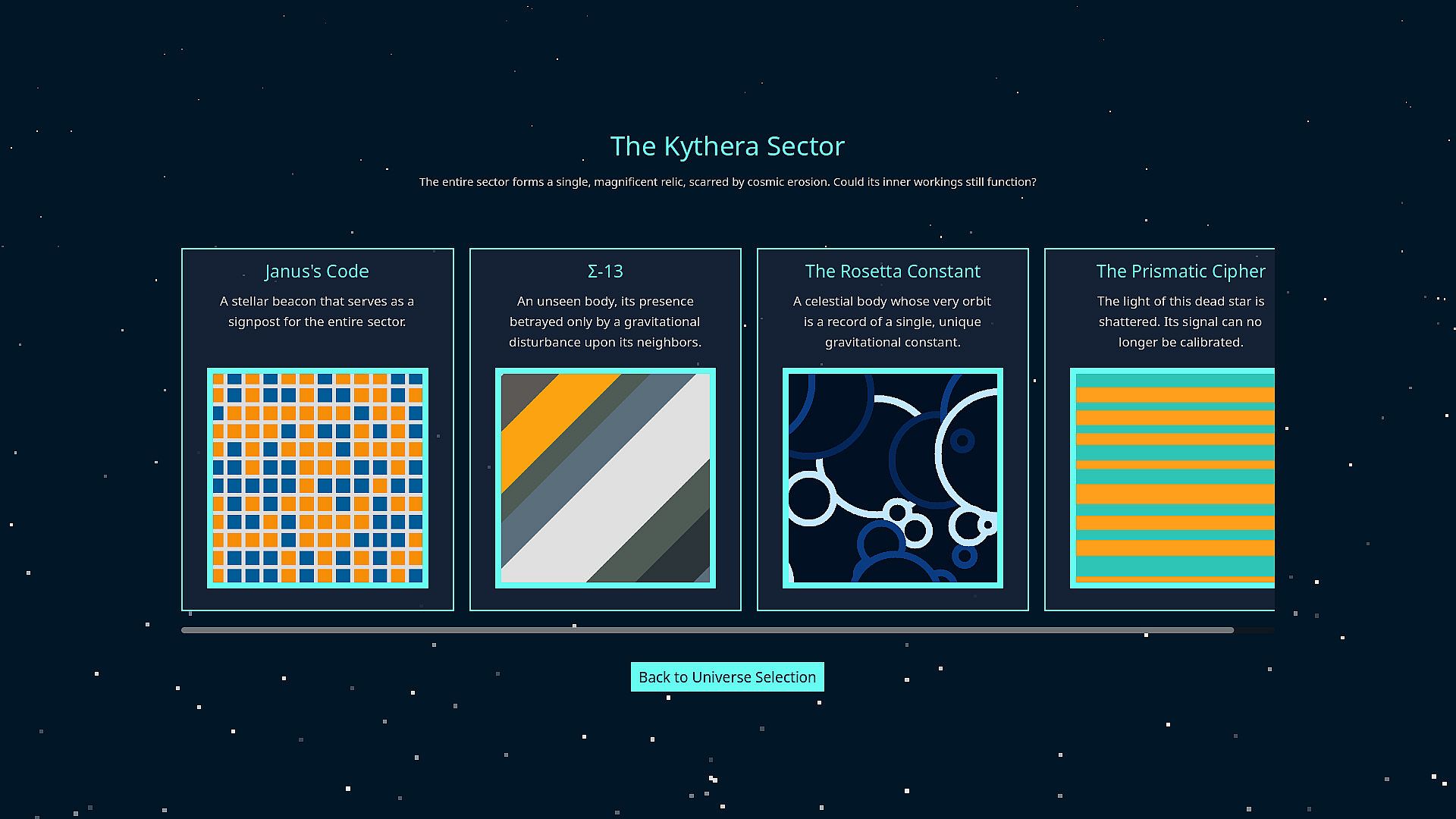 The game unfolds across distinct worlds, each defined by its own set of mechanics and the information they yield. Your goal is to navigate these interlocking systems, decipher their governing mechanics, and exploit their logic to bring order to chaos.