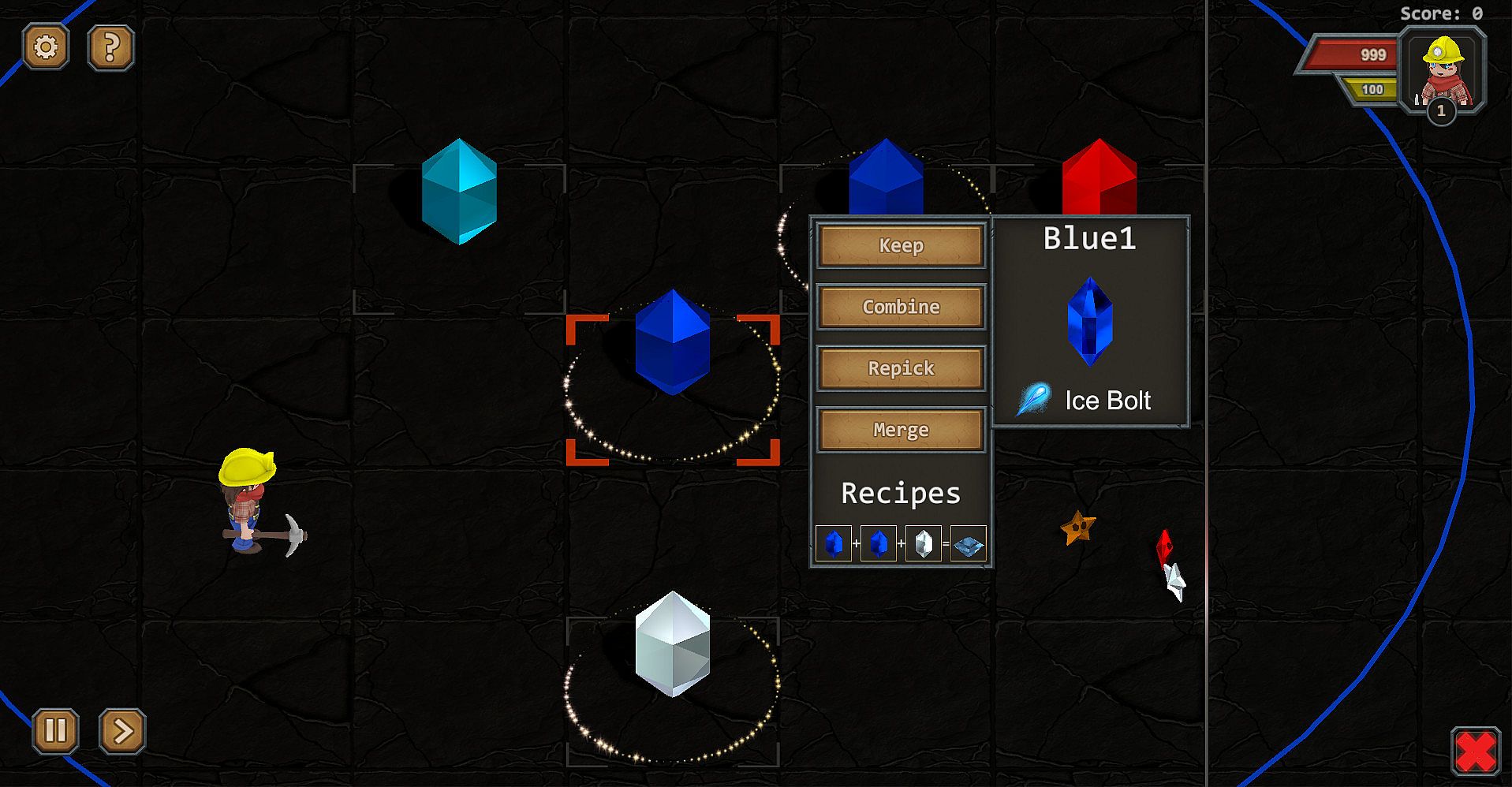 Arcade Mode: Each round mine gems and keep one. Combine gems & defend as Lou to clear as many rounds as possible. Enemies (and Lou) grow in strength each round but so do the rewards.