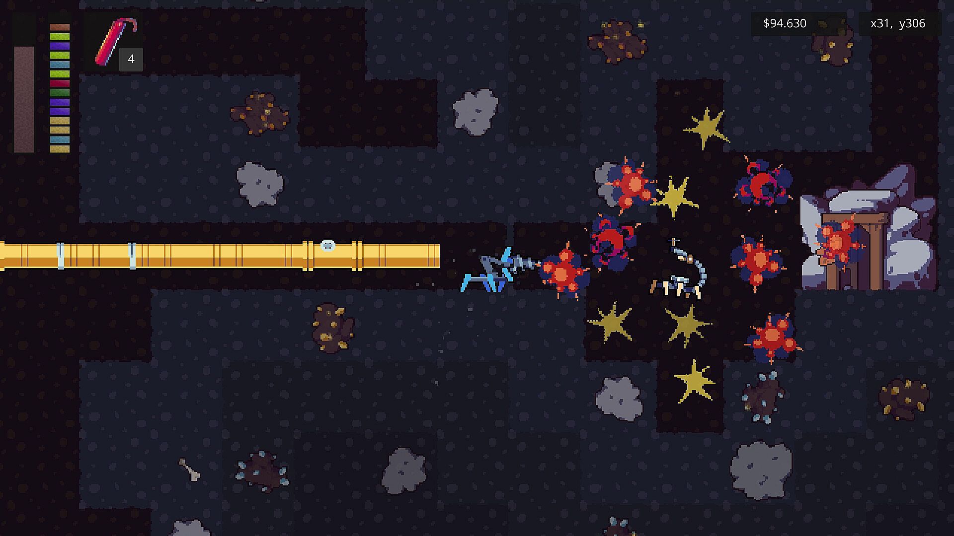 • Collect valuable resources to sell on the surface for cold hard cash!