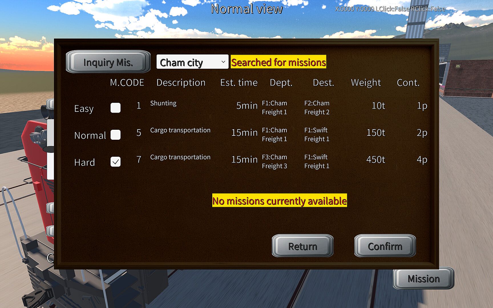 You are a train driver supporting the growth of the emerging city-state "Chamland Republic" that is developing in the mountainous region. Complete missions and contribute to the development of the country.