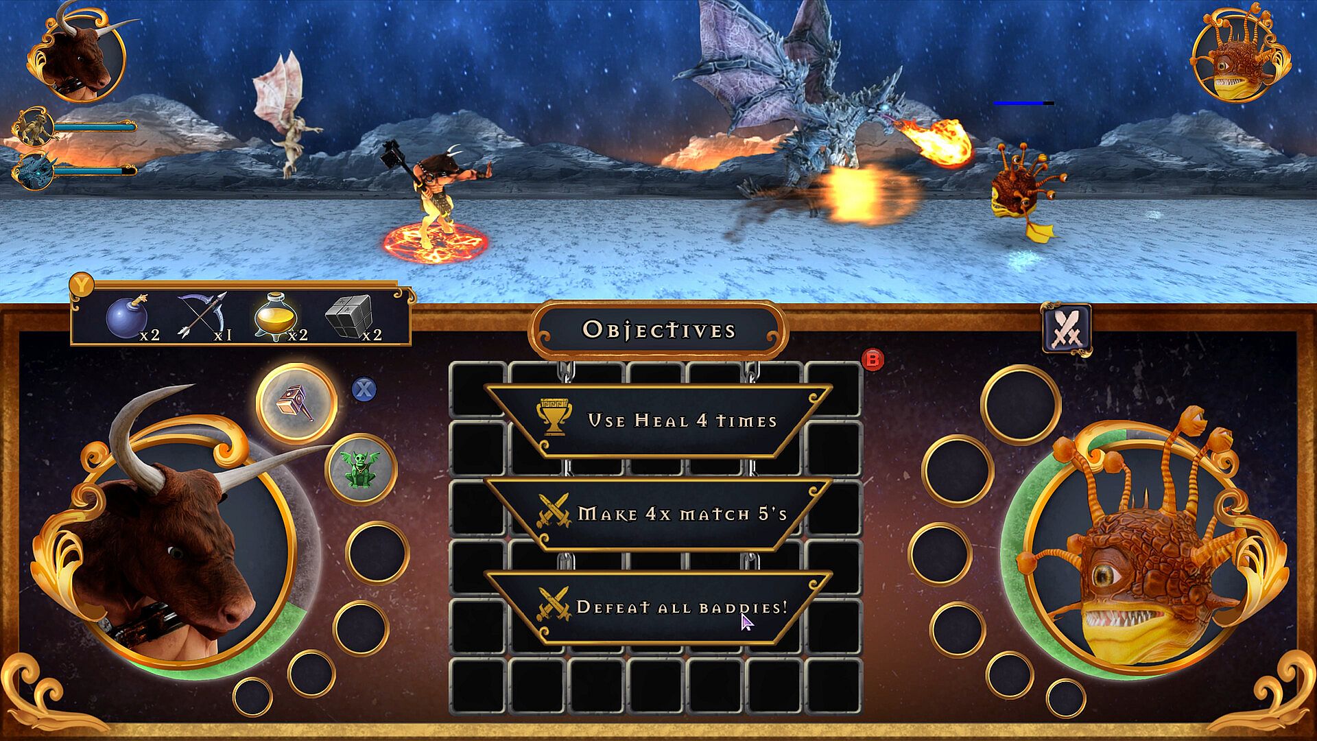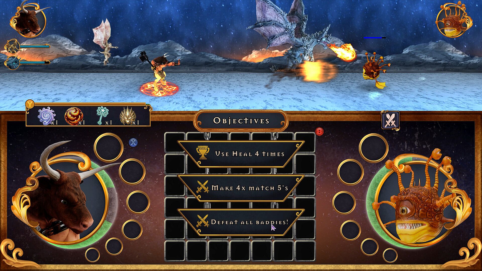 At the heart of Minotaur Princess lies a match-3 system integrated into combat. You line up pieces to execute moves, and the quality of your combinations determines the strength of your attacks, such as launching a basic fireball or a devastating meteor. This mechanic demands quick thinking and strategic planning, especially in battles that combine turn-based choices with real-time execution.