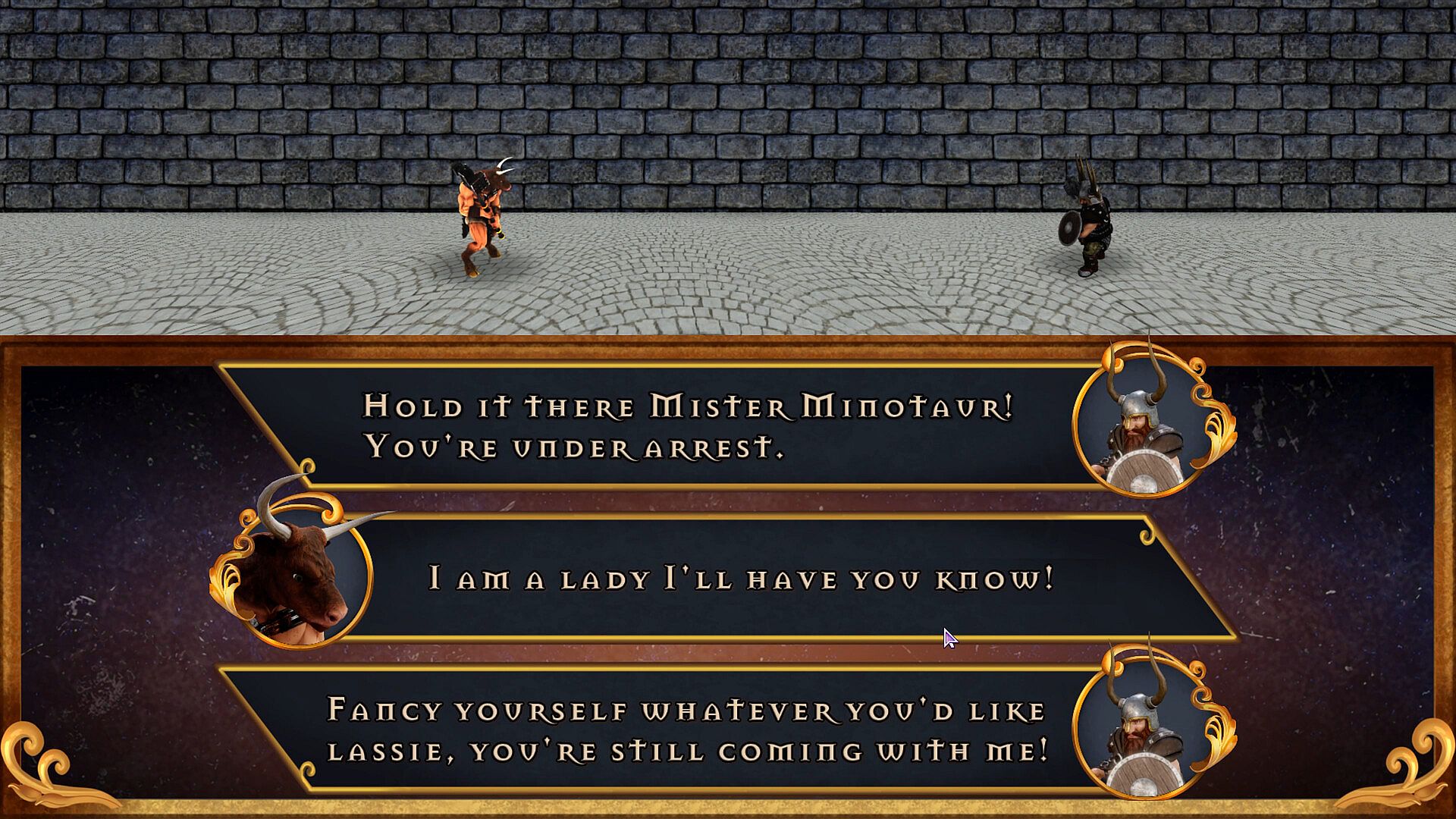 Minotaur Princess weaves a tale starting with a dramatic body swap that sets Atrea on a path of self-discovery and conflict. The world of Akrotheria provides a backdrop of varied realms, each with unique challenges and inhabitants. Funny dialogs add levity to the serious undertones, creating a balance that keeps the narrative engaging without overwhelming the strategic focus.