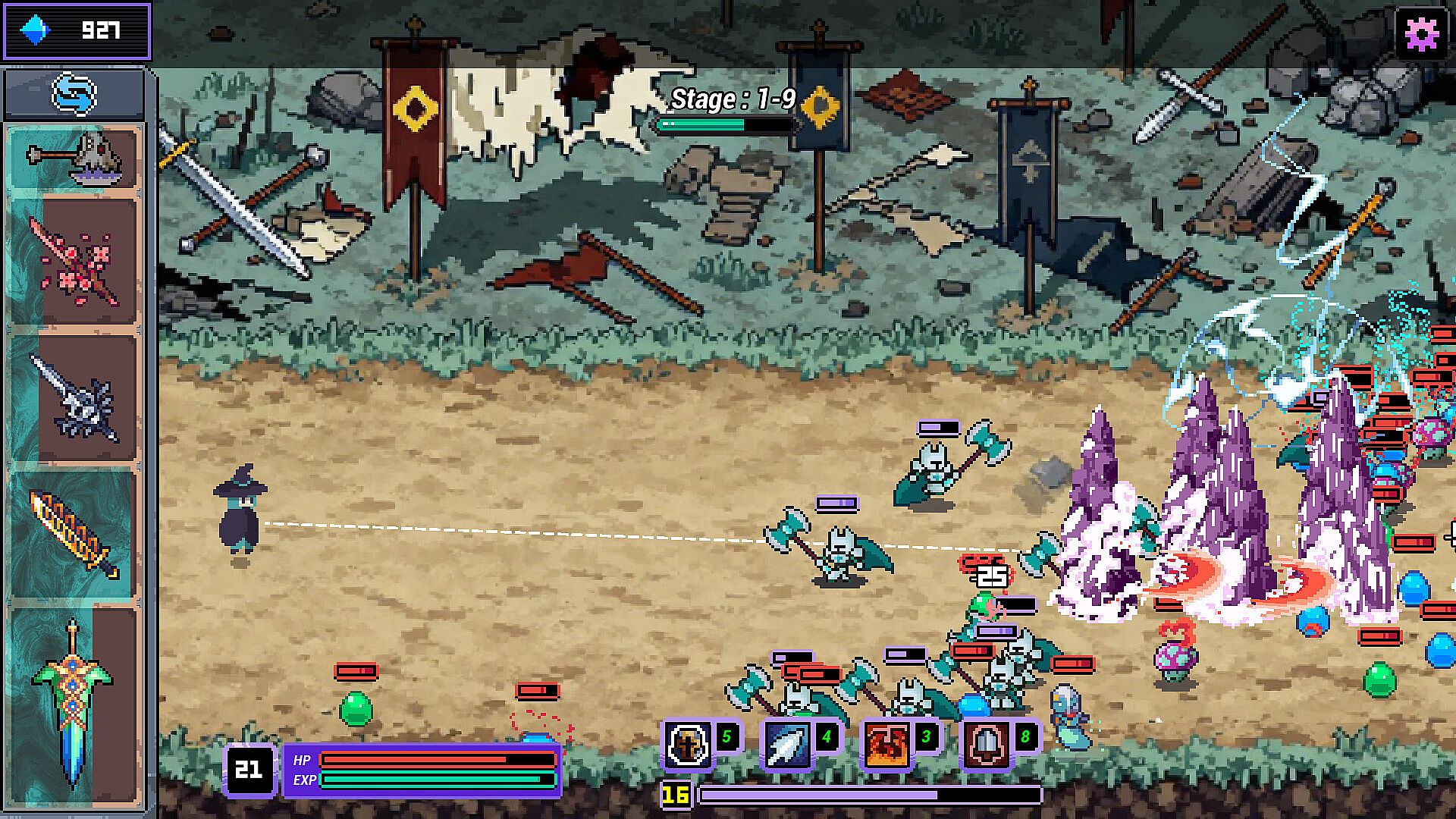 • Unique pixel art blends with bullet hell shooter gameplay, creating a distinct visual feast.