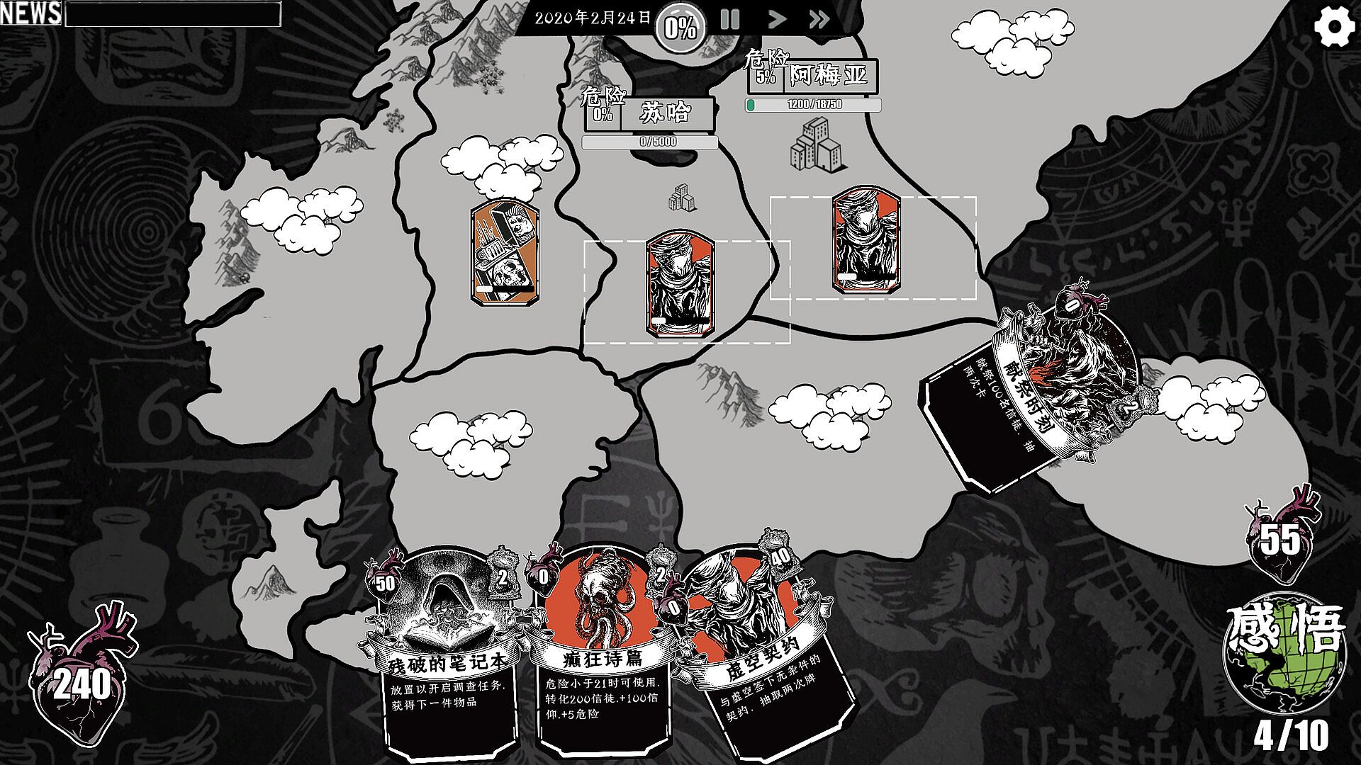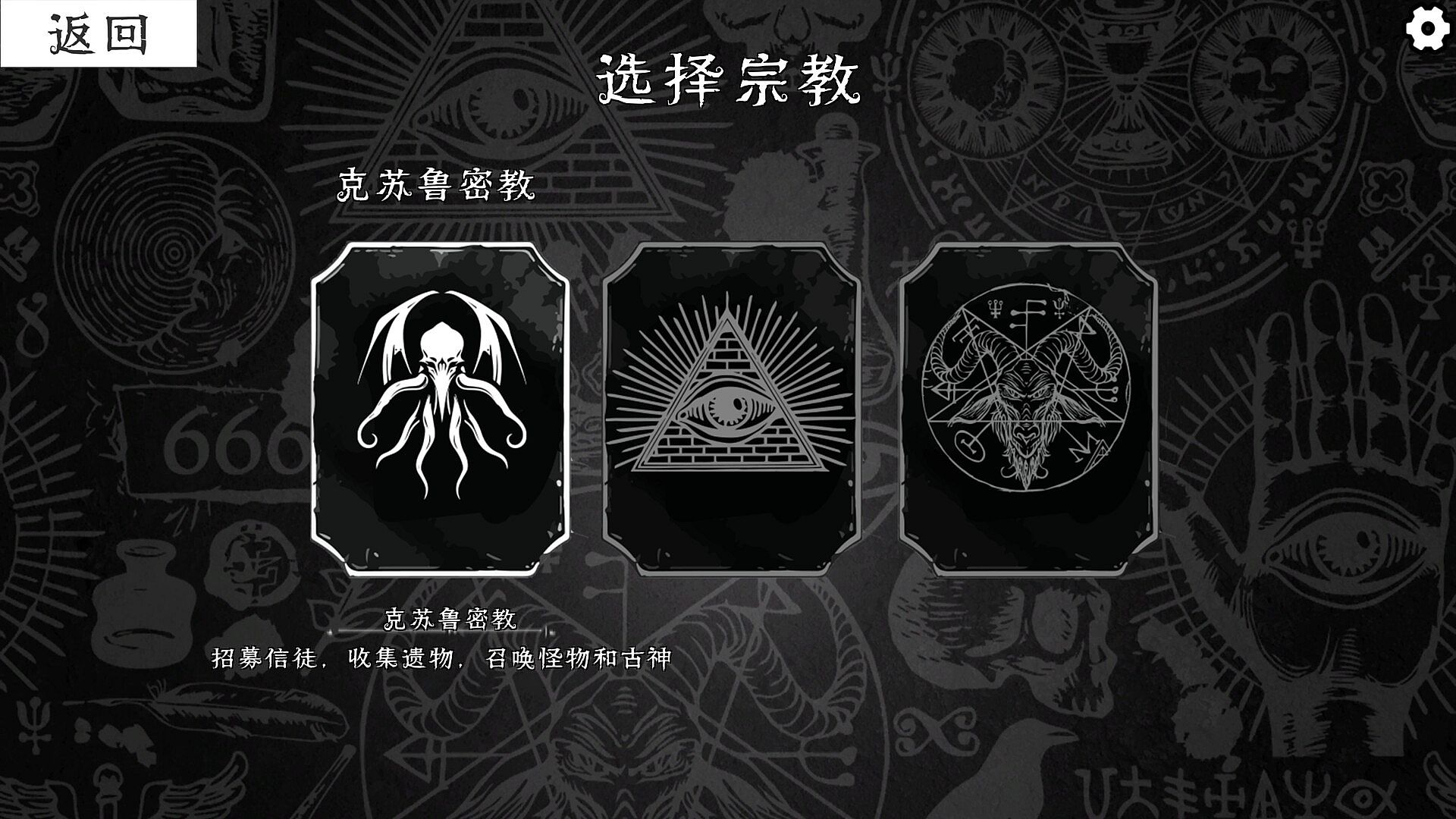 This is a simulation management game with a Cthulhu-themed idle card gameplay mechanic. Players take on the role of the founder of a church, spreading their religion across a fictional continent.Players need to draw cards from a deck containing hundreds of cards with various functions, then use gold coins and other resources to play those cards in the city, with the ultimate goal of converting people all over the world into their followers.