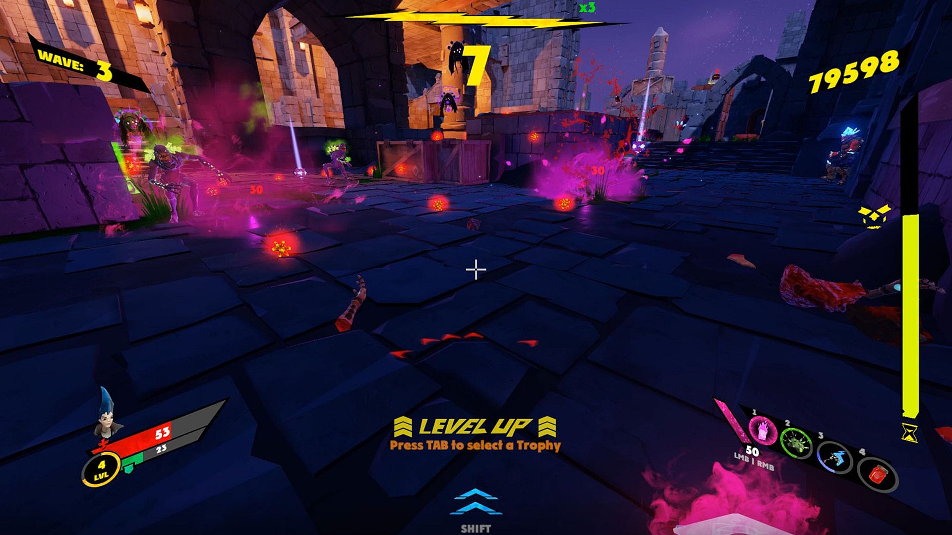 Unusual magic weapons, 100 of trophies that change the playstyle, 7 arenas that will put your skills to test.