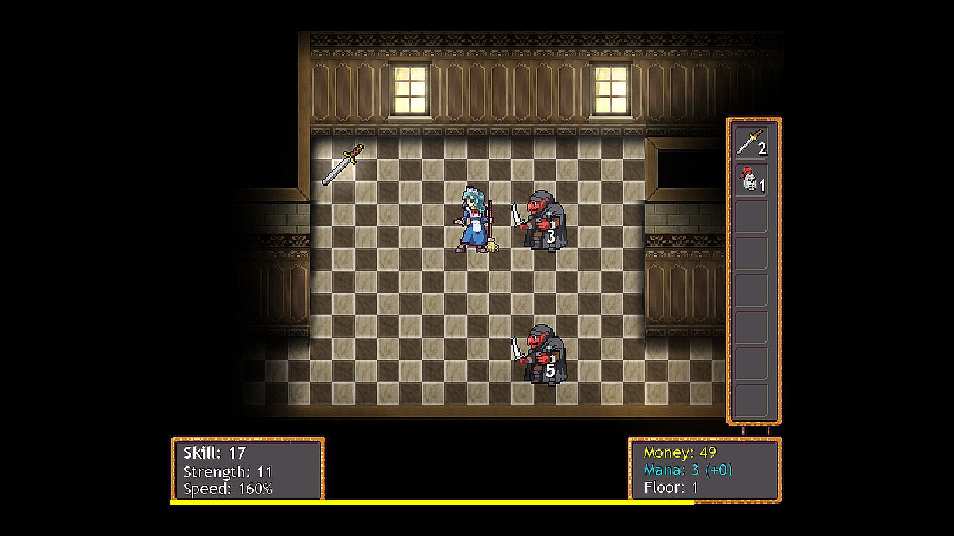 Turn-based, but fast-paced, roguelike-game when you do not need to think over each turn and count the HP. If you see the weak - kill him! And if you see a strong man - run away, or think how to defeat him and earn experience and money. Dispose of the received money and experience wisely and then you will surely receive the favor of Mistress of Maids.