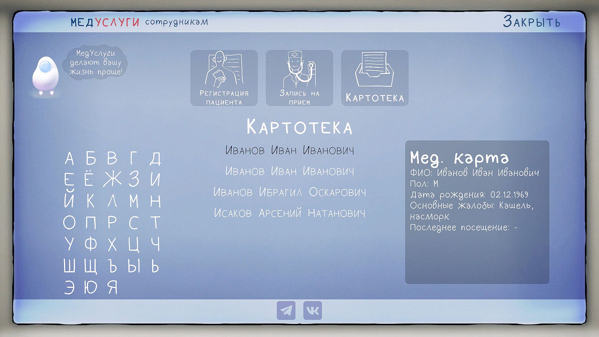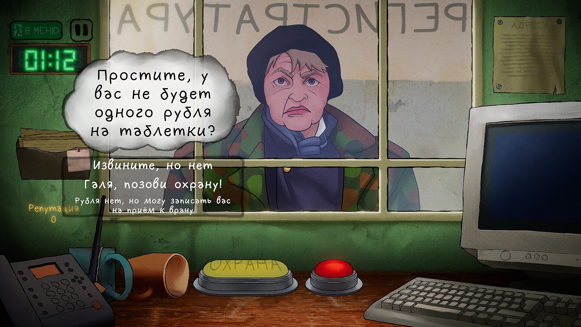 "I just want to Ask!" is a medical registrar simulator with time management elements set in a provincial Russian hospital, featuring humorous elements. Your main task is to help patients, but each one has their own story.