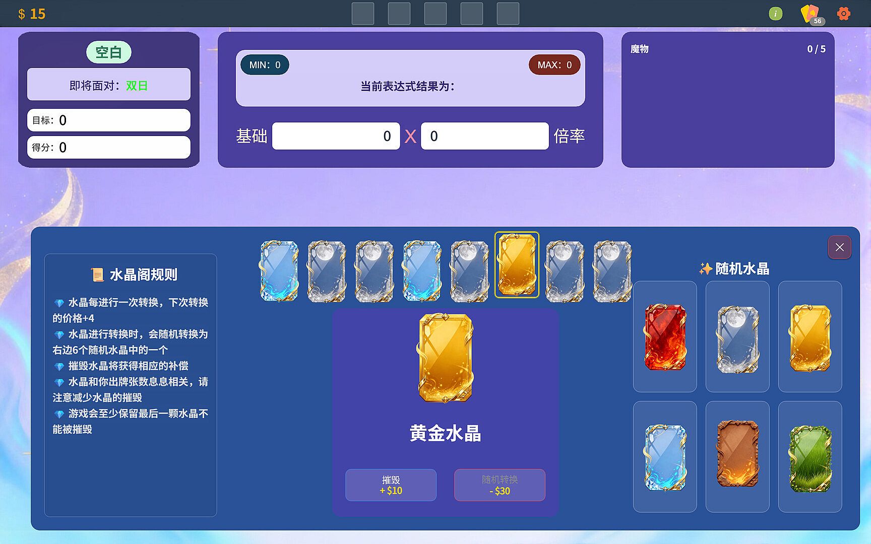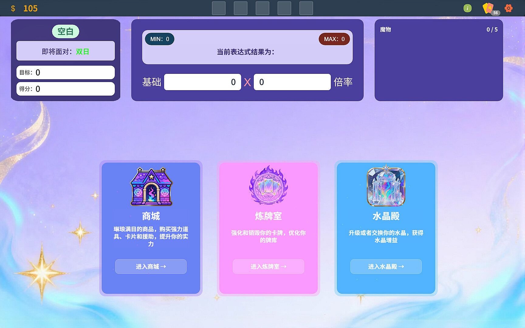 Construct expressions that meet the requirements using as many cards as possible, utilize various unique items, master complex monsters, and use special card enhancements to achieve the corresponding target requirements!