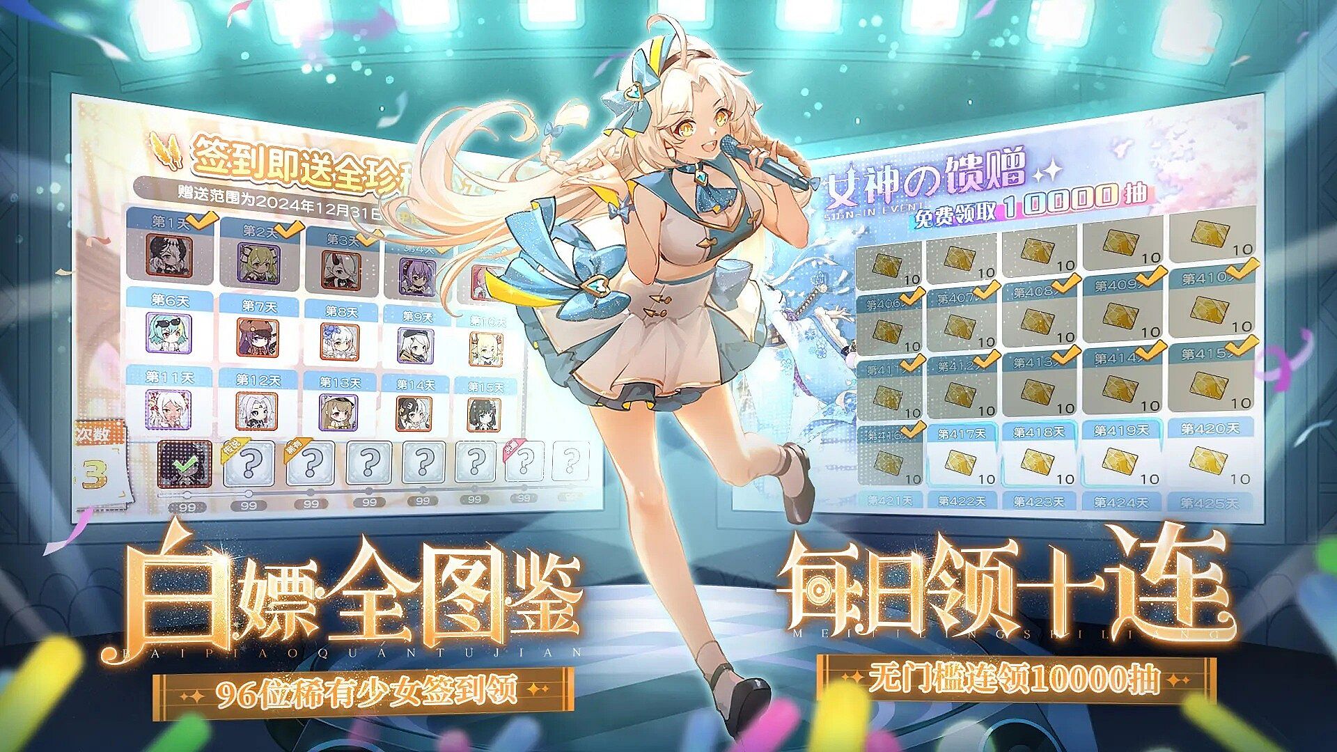 新玩家送3650抽,限定角色也会添加到常驻池子,肯肝,白漂全角色无压力;