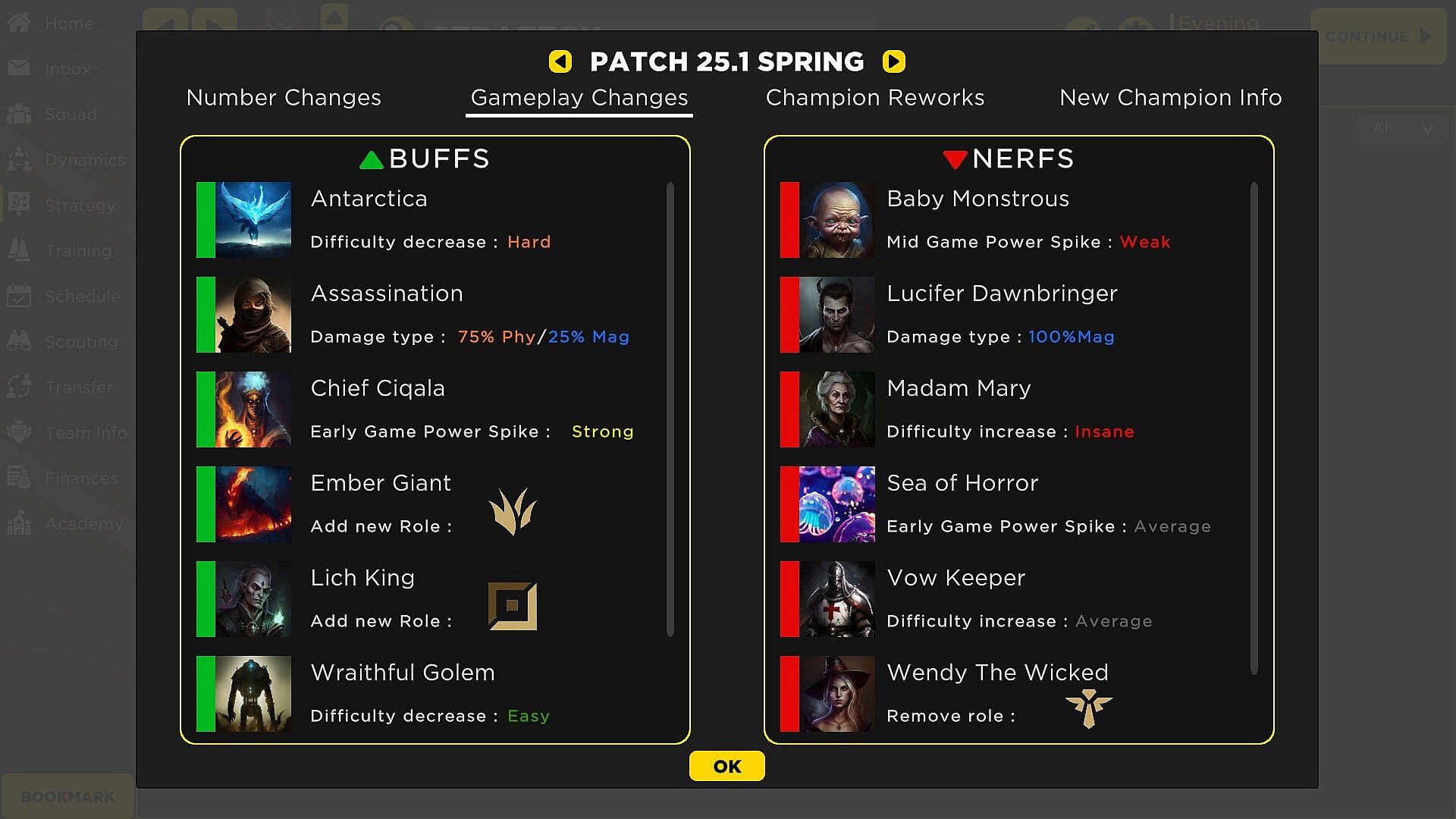 - Adapt to the ever-changing Meta with the information and statistics from your trusty staff members.