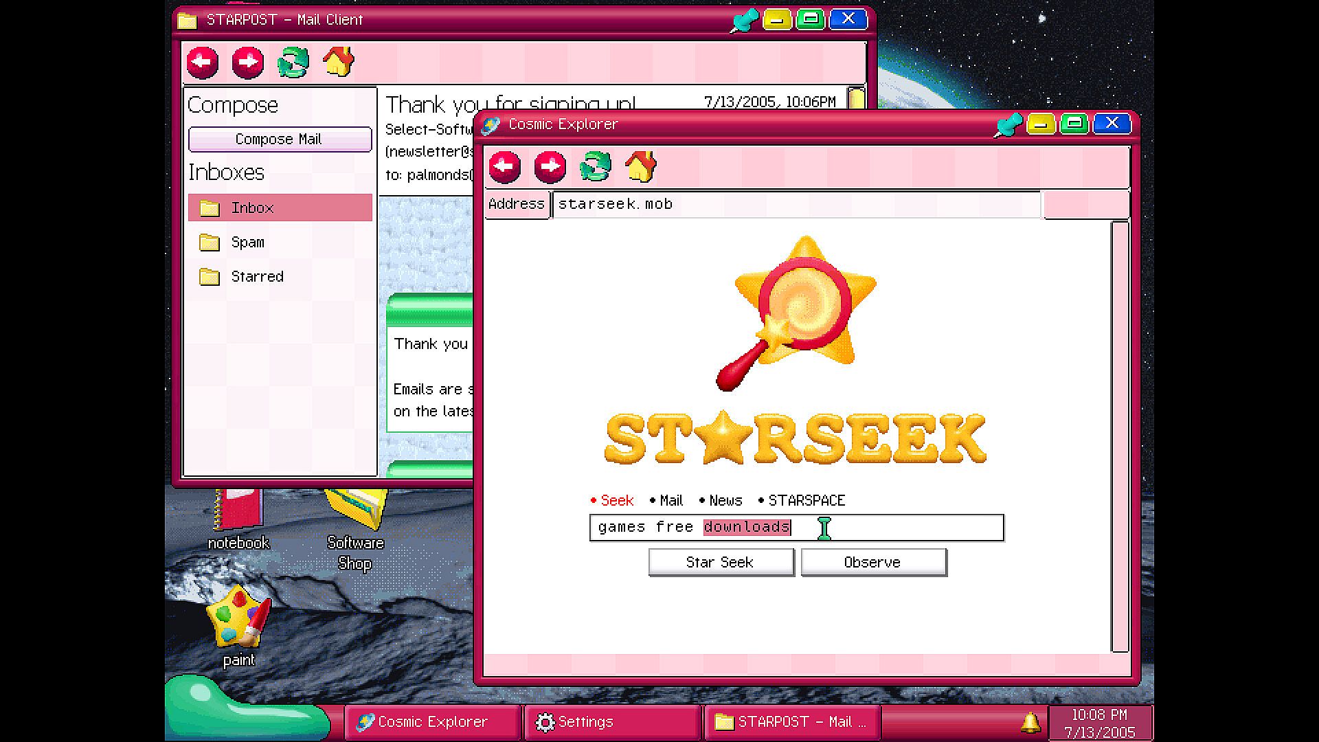 STARSPACE is proud to have pioneered the future of home computing by launching mobOS into orbit, the most powerful and comfortable computing experience for any kind of user. Whether you're new to computers or a total tech whiz, mobOS has everything you'll ever need for the rapidly growing online world.