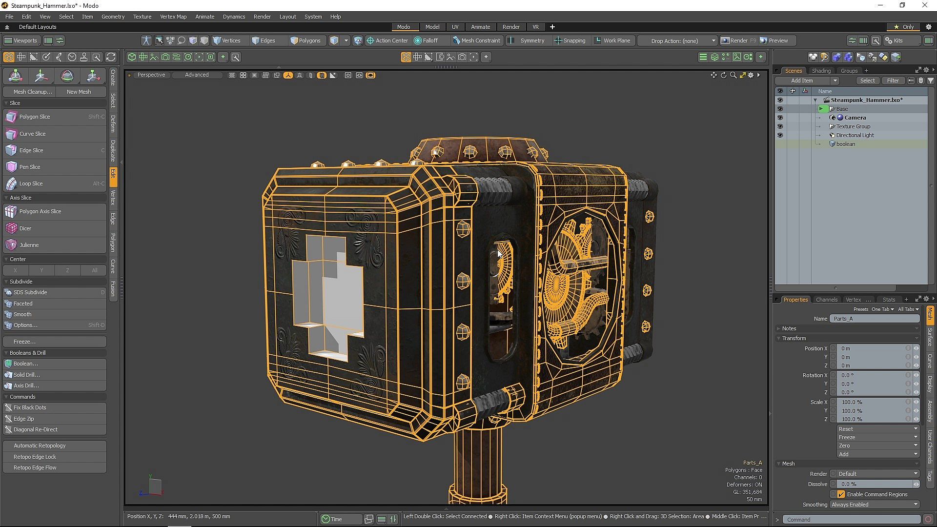• Performance - There’s always room for more performance and Modo 14 delivers on this notion. The advanced viewport has been optimized for faster shader tree processing. Booleans have been accelerated by as much as 380x in complex examples. Component selection is twice as fast and edge removal operations have shown improvements as high as 100x.