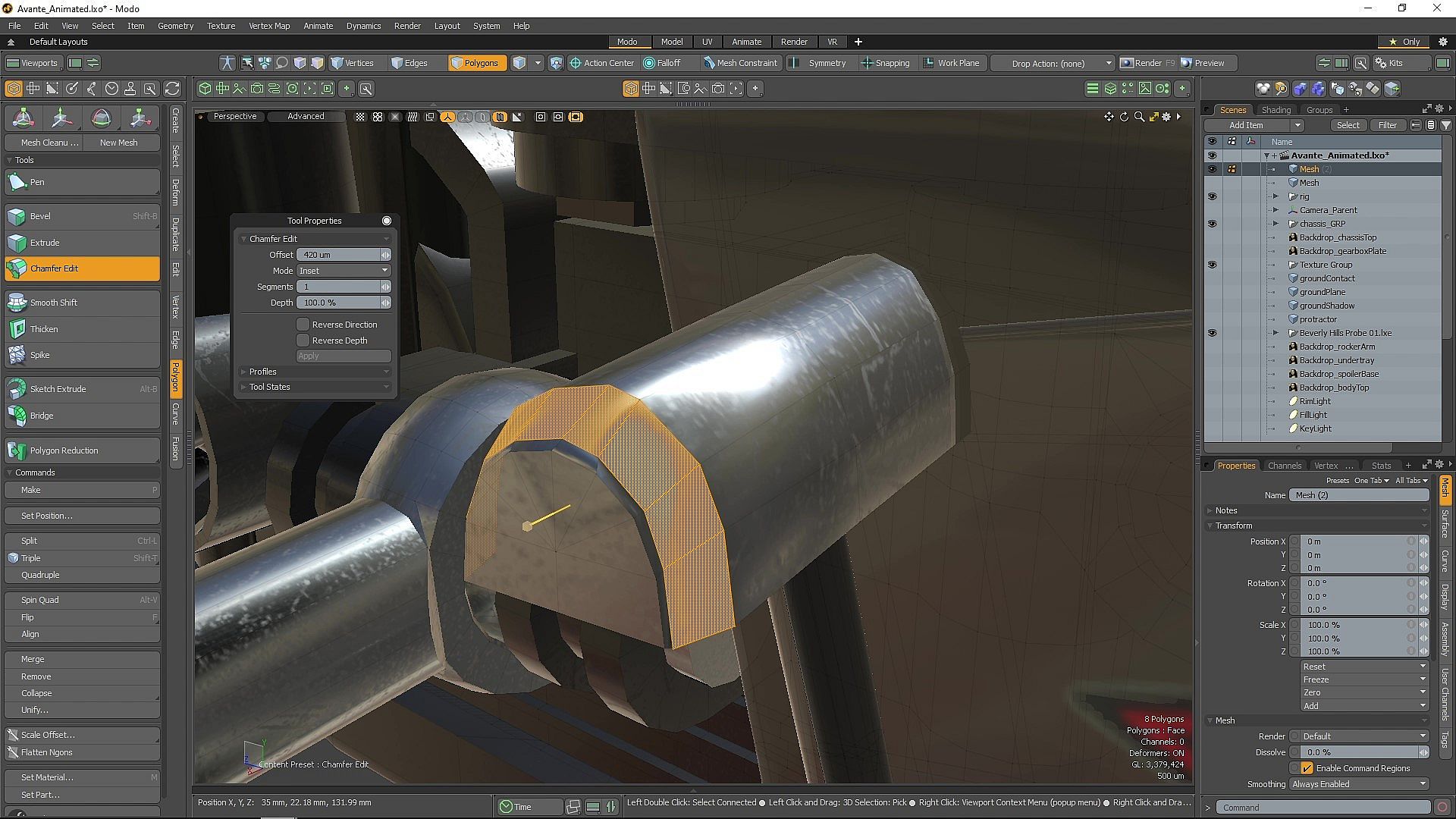 • Direct Modeling - Modo’s direct modeling toolset has long been renowned for its shared focus on workflow and technical innovation. The new Edge Chamfer tool has now reached feature parity with bevel. Add point and Unbevel offer improved revision capabilities. Polygon Bevel Autoweld provides the automated decision-making that artists expect from modern modeling tools. With over 17 total features and enhancements in this area, direct modeling has never been easier, faster or more flexible.