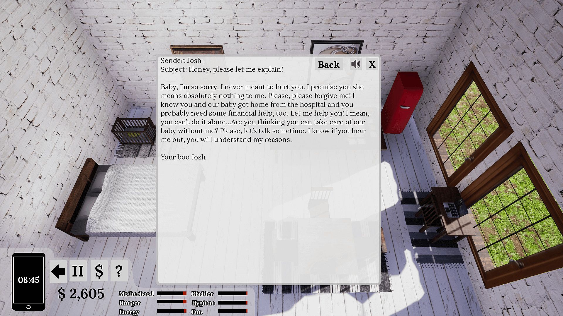 In this fun story-driven simslike cooking game, you start out as a new single mom, who just broke up with her boyfriend. As you move into a new apartment, you have to take care of your baby and your needs by interacting with different objects.