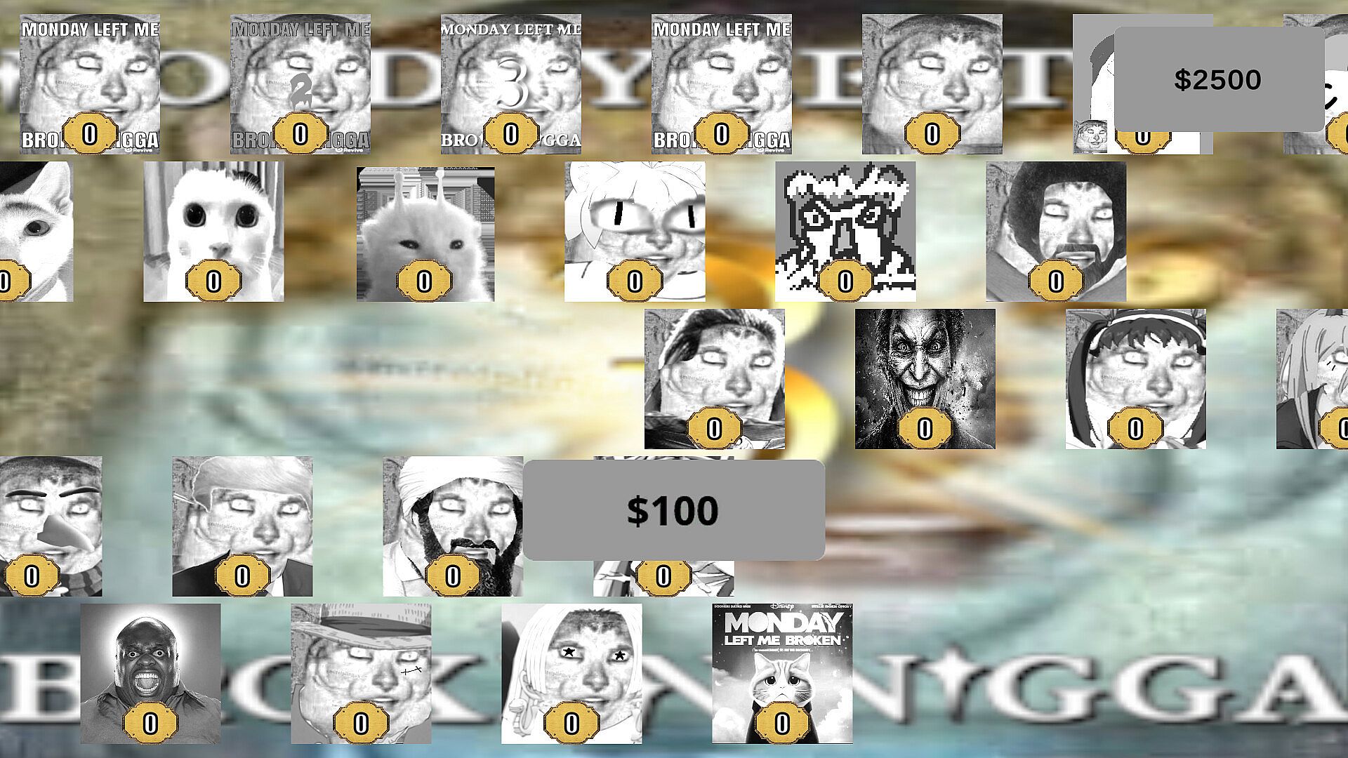 Collect all of the Monday Left Me Broken cats in this cheery and long-term gacha game where your true enemy is RNG. While you gain money passively since you have a j*b, you must desperately gamble in hopes of allowing all of the Monday Left Me Broken cats to come home. Unlock everything from the common Monday Left Me Broken Cat to the Legendary black_man.jpeg. Can you collect them all, or will Monday leave you broken… again?