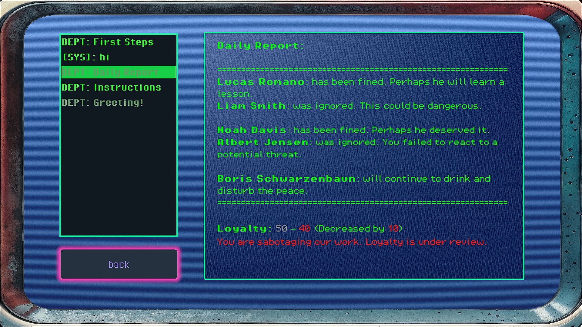 Every choice comes at a cost and is closely watched by a distant Department. Will you follow the System’s rigid demands? Join a secret resistance? Embrace the cold logic of the AI? Or perhaps find an unexpected path of your own? The world reacts to your actions, and its fate ultimately depends on you.