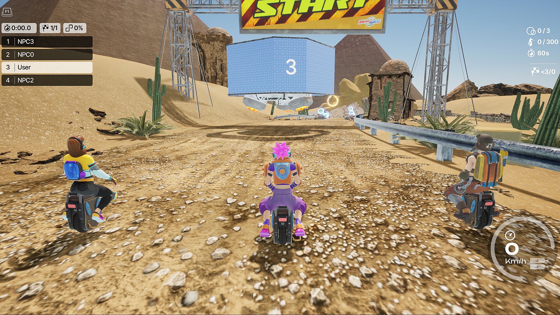 MonoRace is a cheerful electric unicycle racing where you can explore tracks and get points by performing tricks. Try the game in VR and PC versions with unique controls.