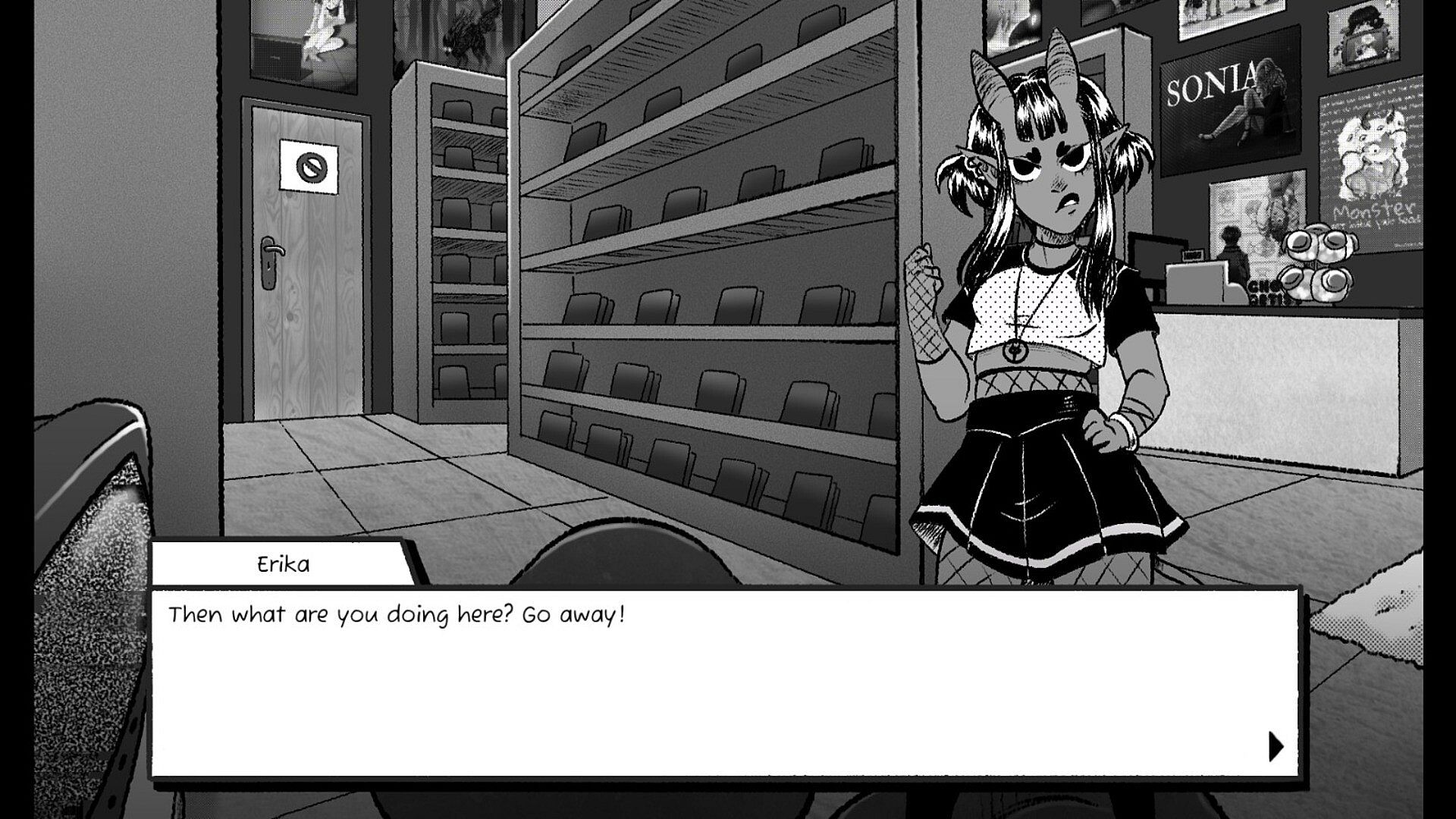 You just wanted to rent some dvd’s and ended up stranded in another world full of MONSTERS! Try to find your way back home while meeting some very curious, possibly undiagnosed neurodivergent but very cute monster girls who might help you (if they feel like it).