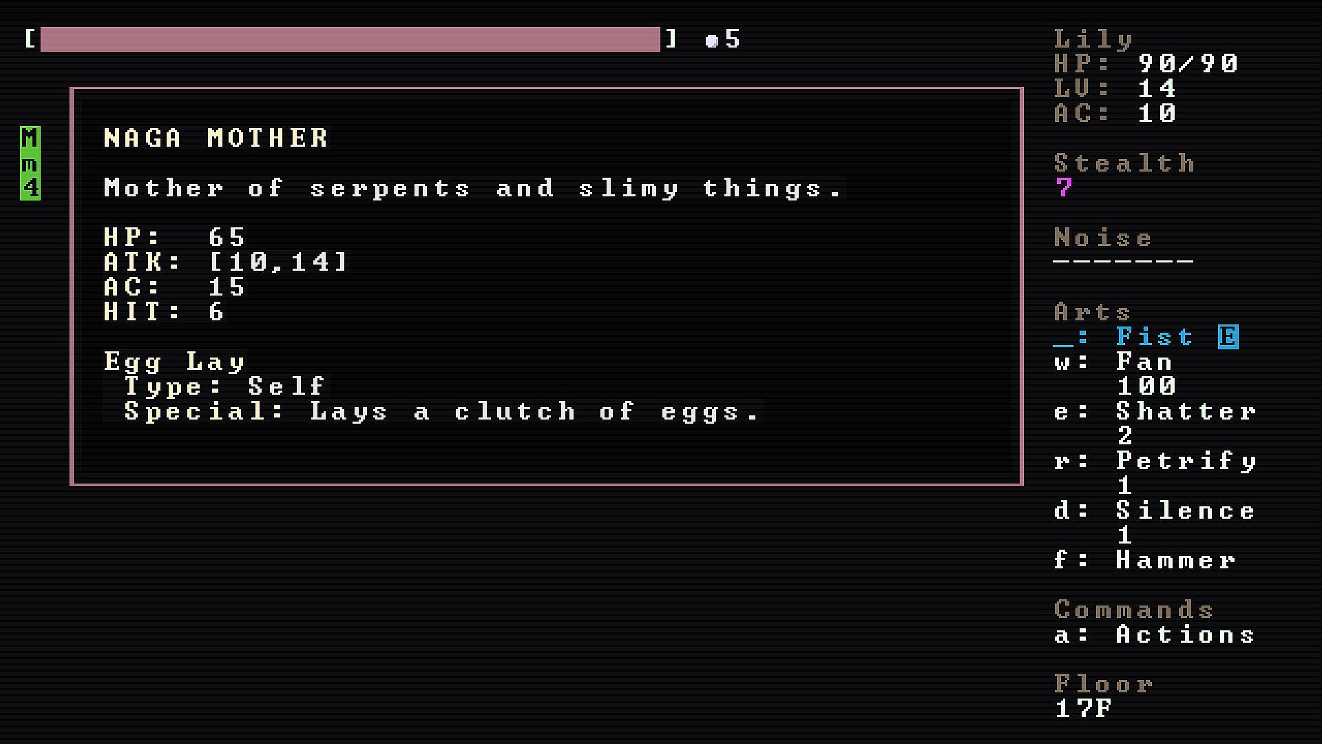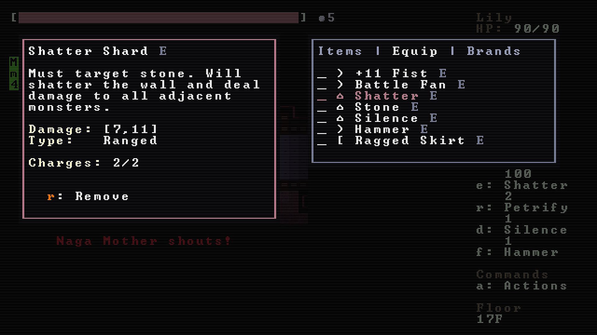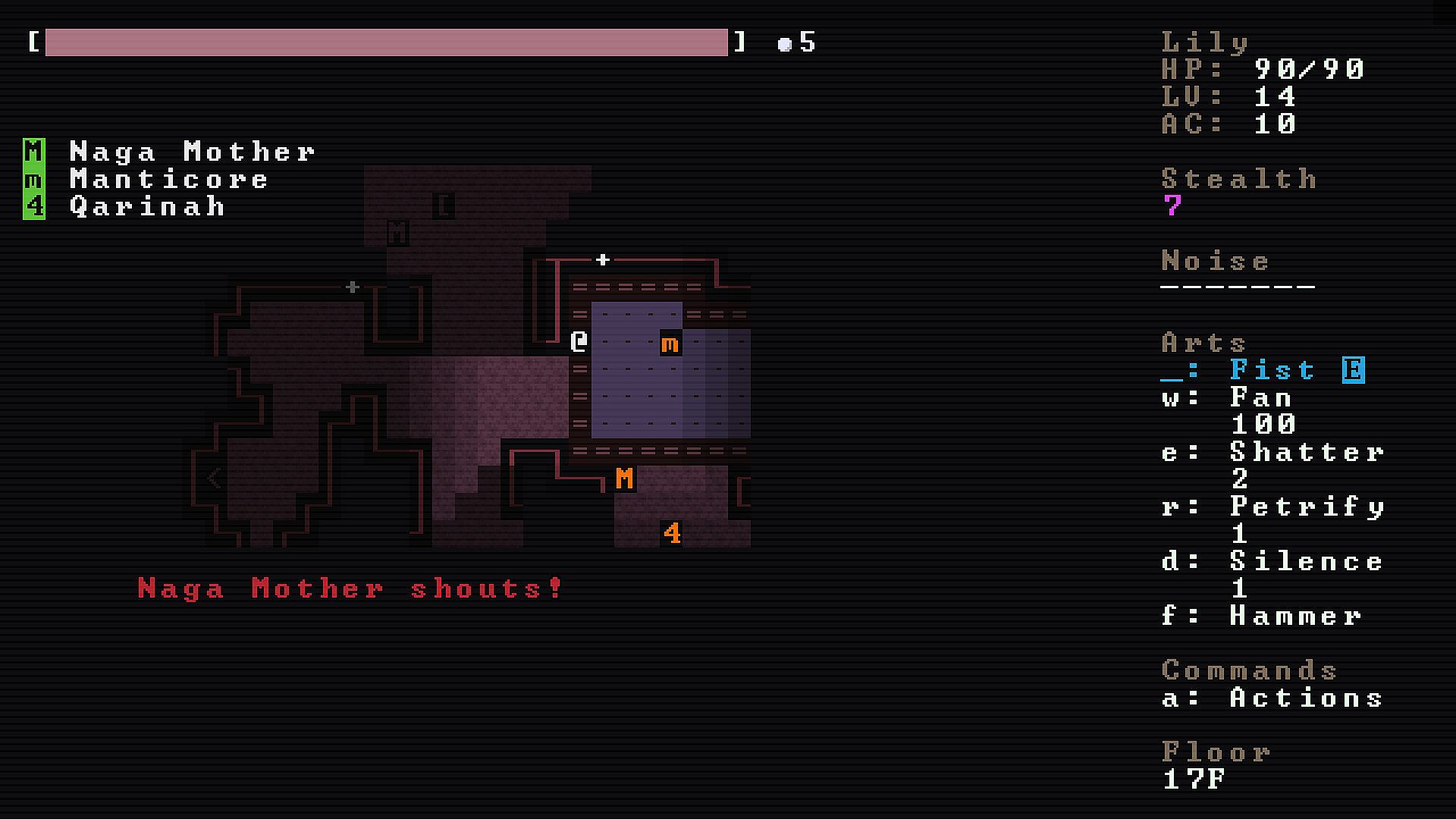 Monster Lily is built for keyboard-only play in the classic roguelike style. If you haven’t played this way before, there’s a brief learning curve, but it becomes second nature fast. The Smooth Walk System makes movement easy and natural: just hold a movement key in the direction you want to go.