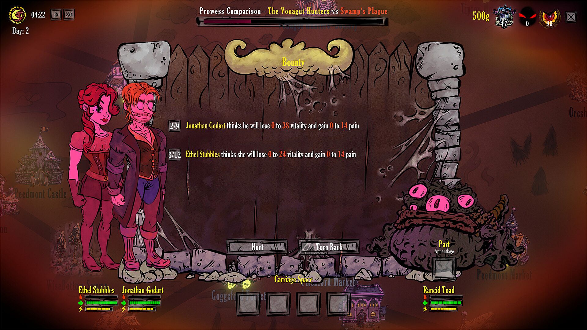 With all that's been said, there's still more advise to be given - Raise your hunting group's local Fame as high as you can to unlock more and more perks, such as access to higher tier items at markets, faster carriage speeds, and carriage space. And don't neglect staving off the Darkness, as it only serves to empower that which you seek to rid - the Monsters of Moldred.
