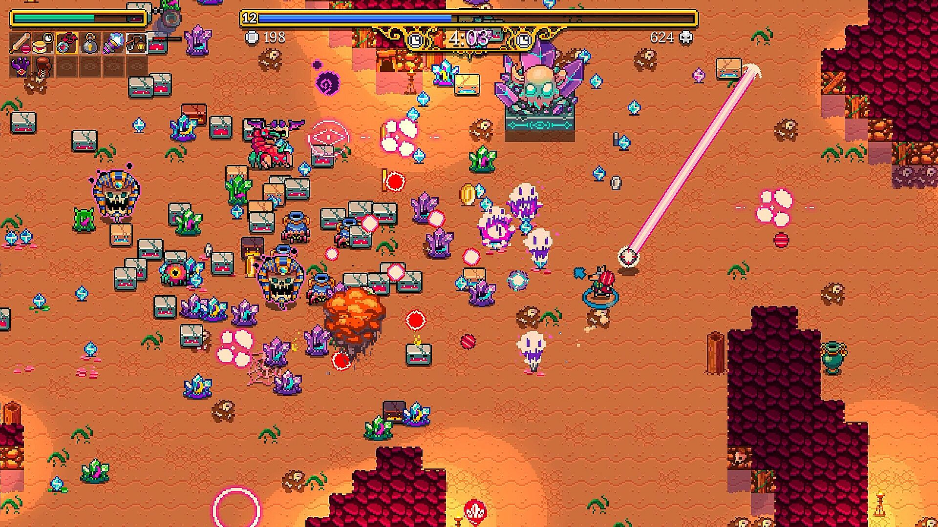 Aquire gold to purchase permanent upgrades that will further boost your destructive power.