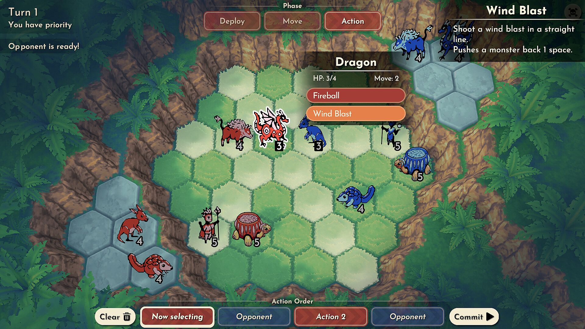 The attacks in Monstrata focus on positioning, with abilities that push, reflect, launch and chain. Invent new combinations of monsters to take your opponents by surprise.