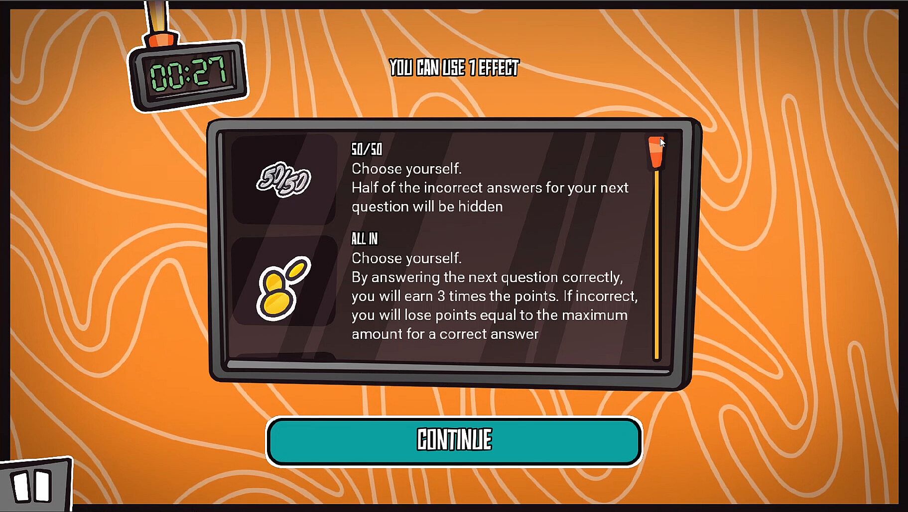 In the game, you’re not only answering questions but also influencing the gameplay with tricks and boosts. Want to slow down the leader or help yourself get out of last place? Use special effects to make the round more intense or give yourself an edge.