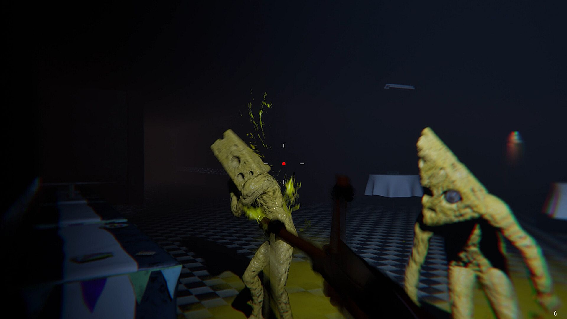 Use makeshift weapons such as slingshots, nail guns, and kitchen knives to fight a large cast of cheese-born baddies. Enemies react based on where they are hit.