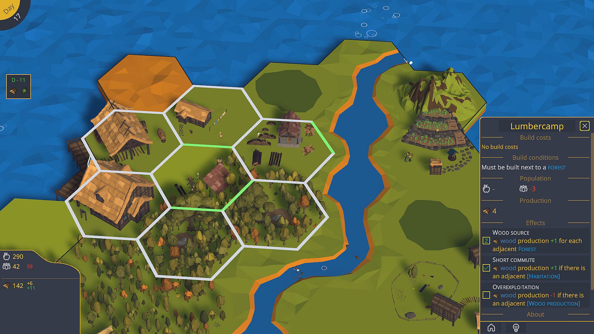 • Simple yet deep building placement system: find the right place for each building to optimize its production and that of its neighbors, present and future