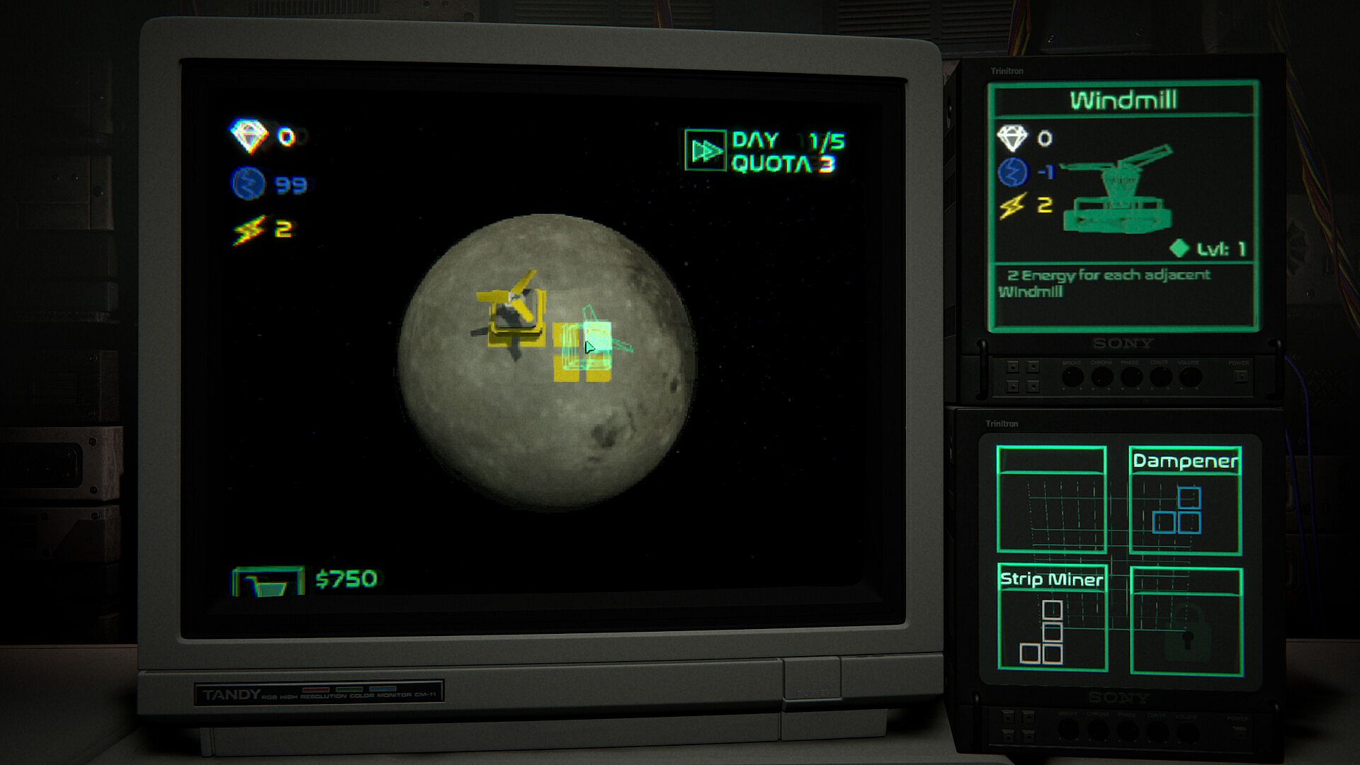 Slam down structures and watch your resource numbers rise or plummet. Every structure you drop can boost intake or push your rig to the brink of collapse. It’s all about fine tuning Energy and Stability to keep your rig operational and your moon in one piece.