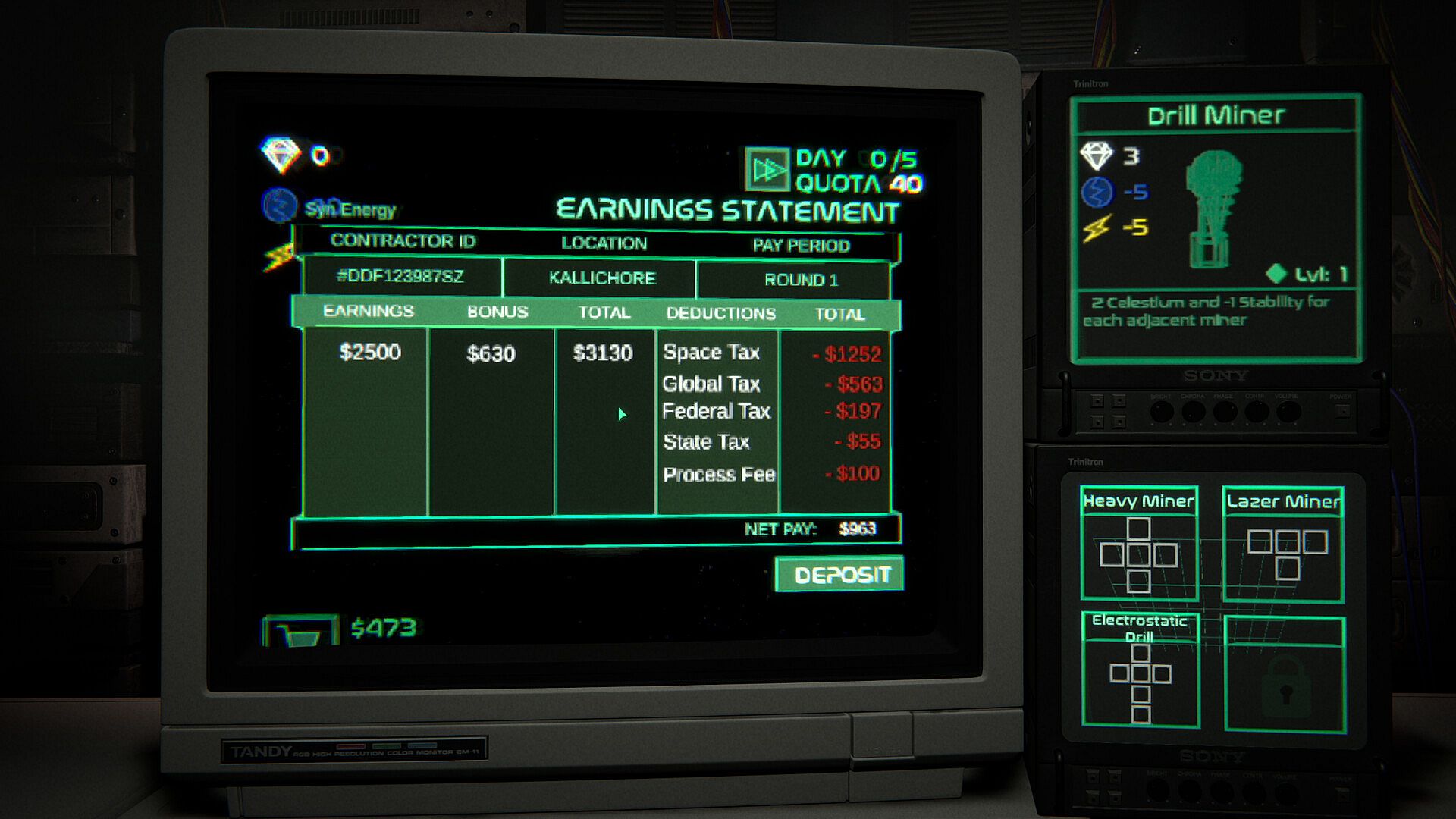 Earn cash and discover new ways to power up your rig. From game altering unlocks to specialized satellites, every improvement helps you delve deeper, gather more, and meet your next quota.