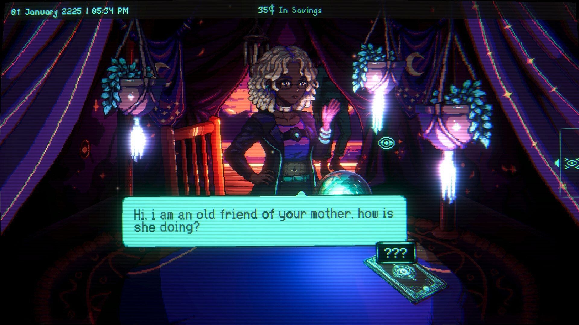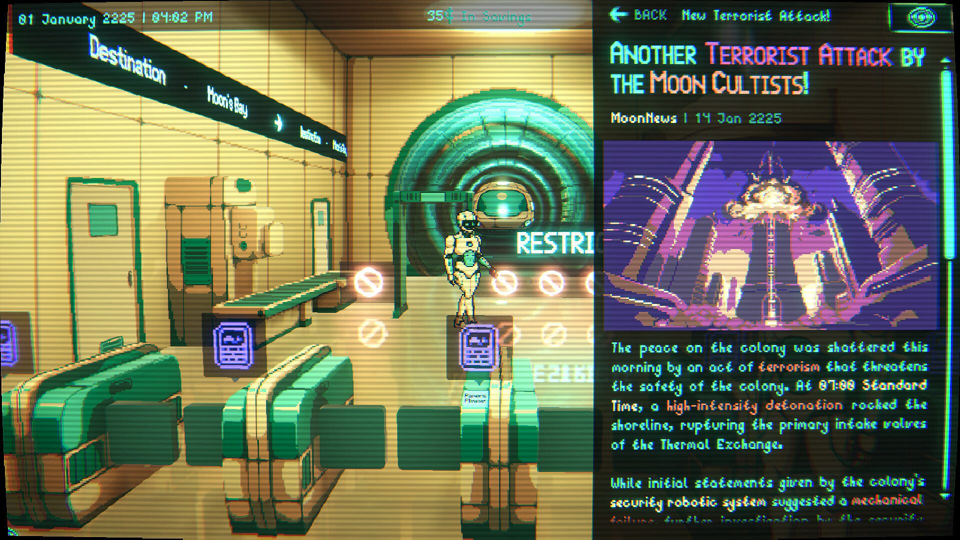 Inspired by games like "Papers, Please" and "VA-11 Hall-A: Cyberpunk Bartender Action", this is "Moon Reader".