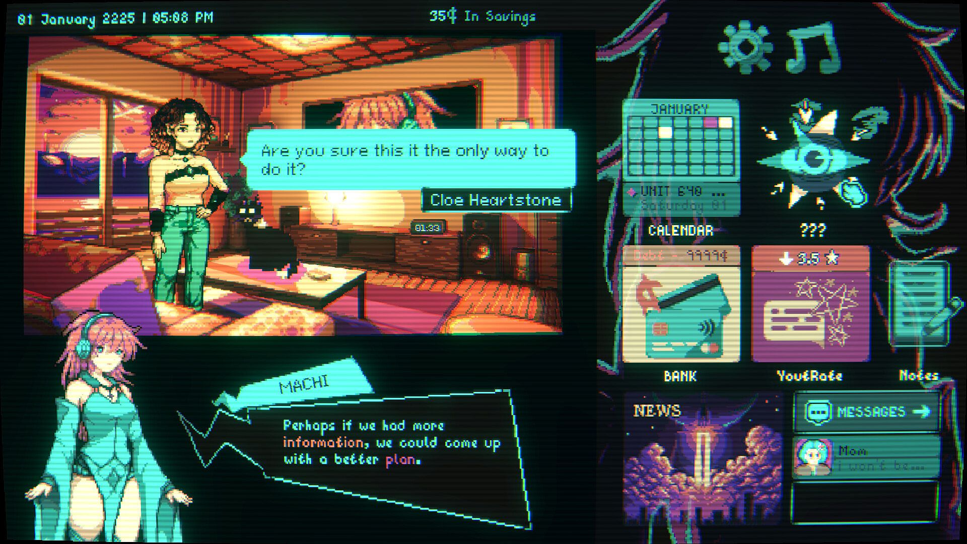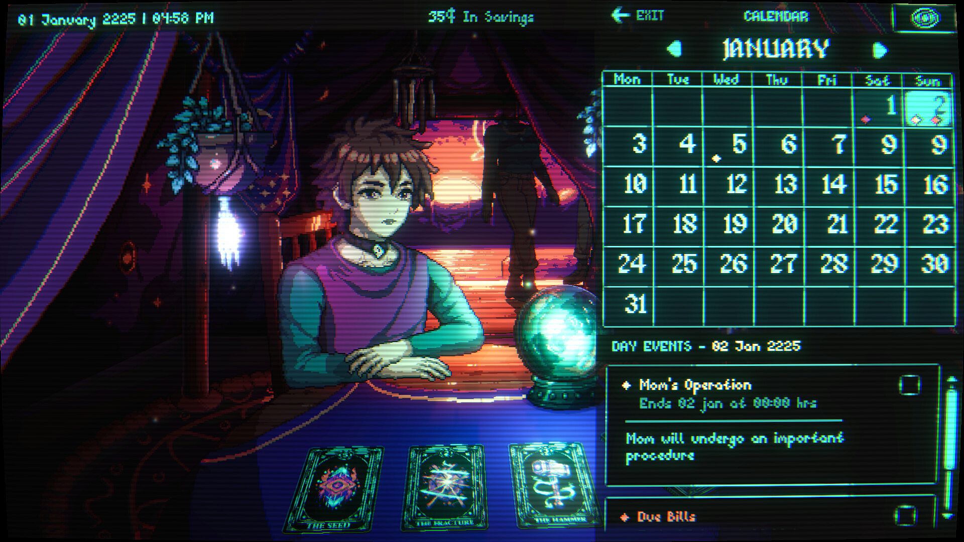 Narrative Life-Sim: Your decisions shape the narrative. Play your cards, take decisions and pay your bills, all of which affect how the story goes.