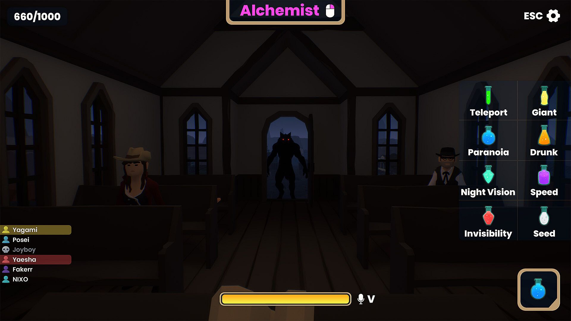 Through voice chat discussions, accusations fly and players vote to execute who they believe is a werewolf.