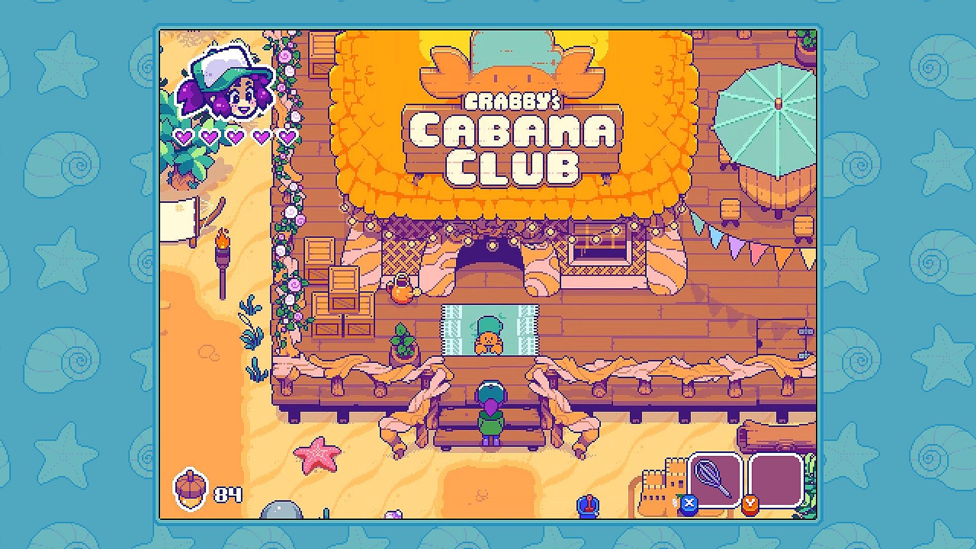 A candid hermit with big dreams for Crabby’s Cabana Club. The lil guy's gonna need your help to establish a thriving community hub celebrating all that Moonshell Island has to offer.