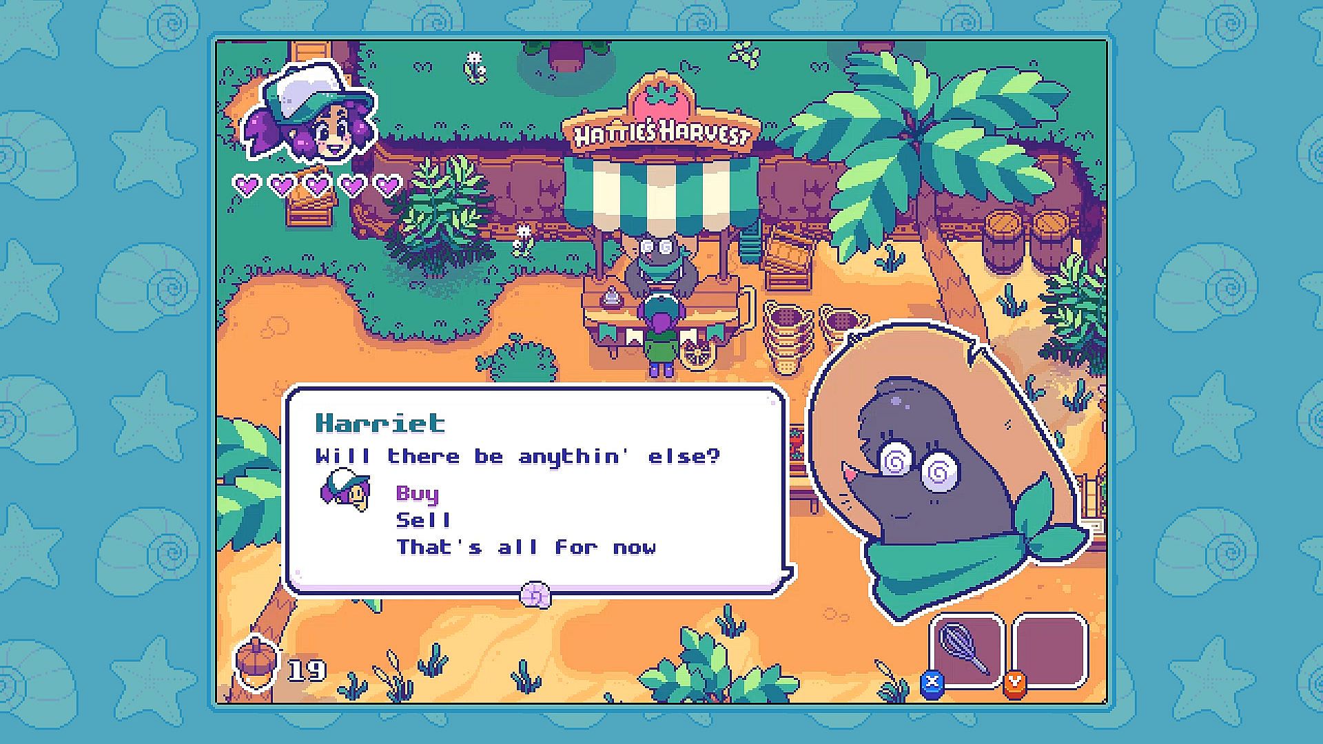 You wake up on Moonshell Island and are taken in by club founder Crabby, but your arrival coincides with the beginning of a dangerous mutation turning produce across the island into ‘Nomsters’.As the new ambassador for Crabby’s Cabana Club, your responsibilities will include: