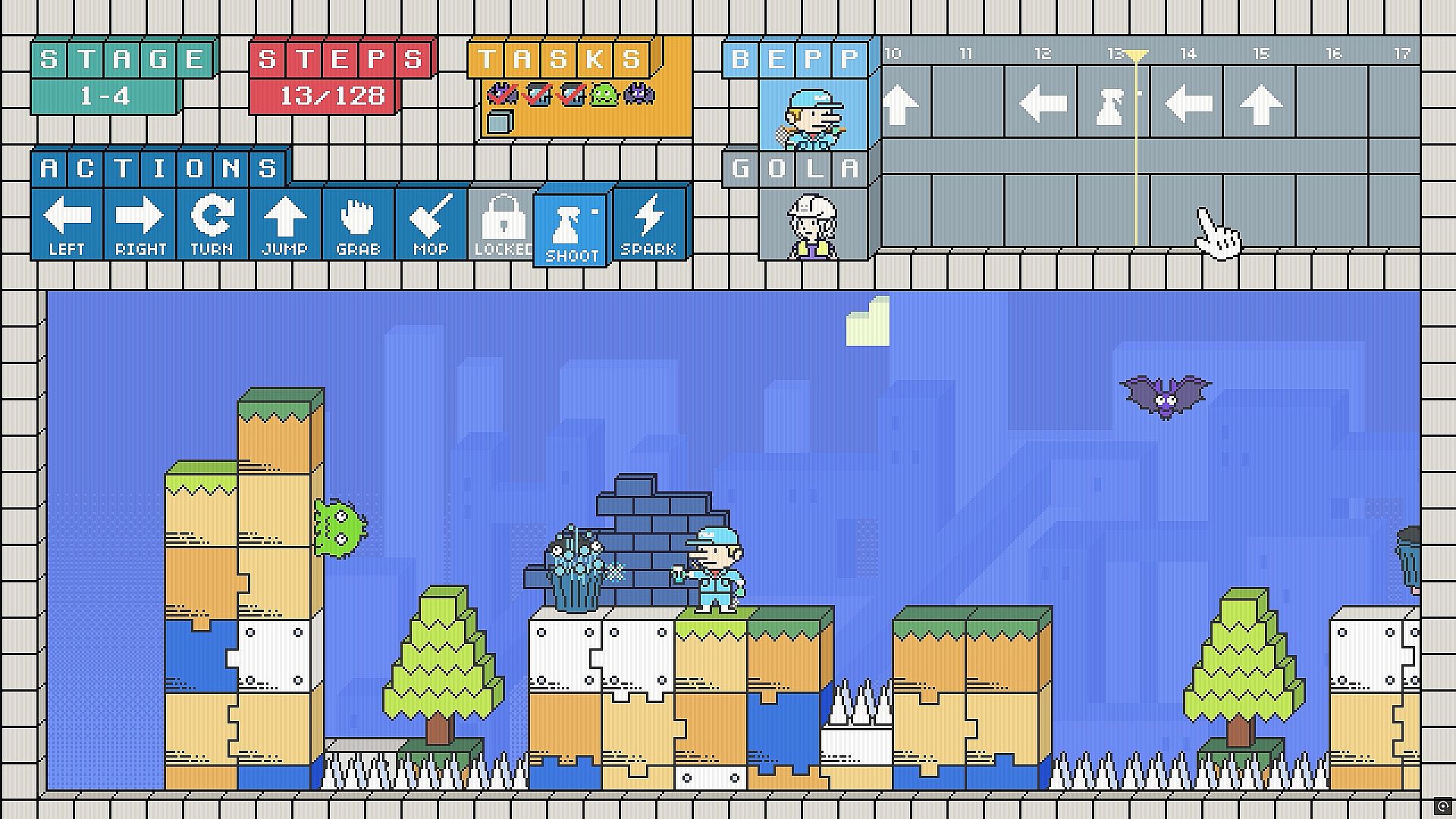 The game features a unique system where players place actions on a timeline and control characters as if programming them.