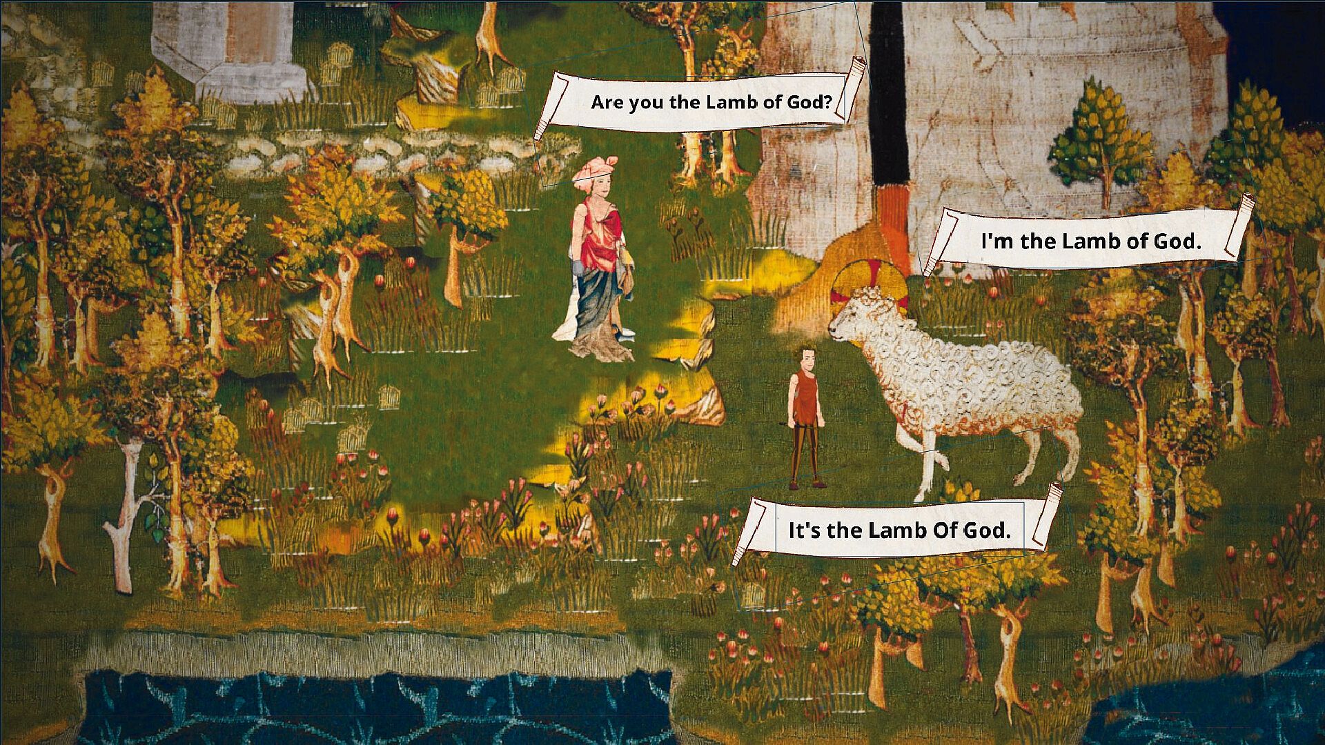 A unique and special style based on the breathtaking Apocalypse Tapestry (Tenture de l'Apocalypse). Woven stillness from the style of this medieval "comic" is brought to life and transformed into a historically very non-accurate adventure.