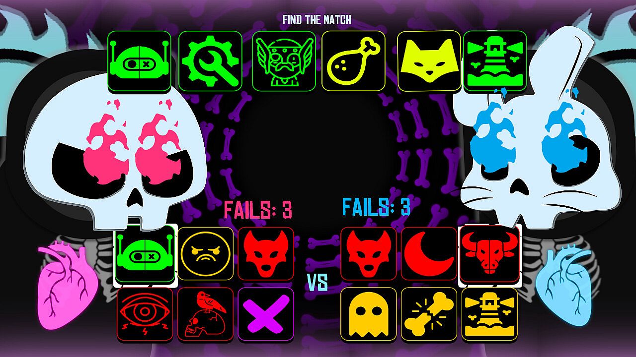 Playing MorDobble is easy. You'll be presented with a set of images. Your task is to find the matching pair before your opponent does. But be quick, because the loser will be subjected to a horrifying heart-breaking curse.