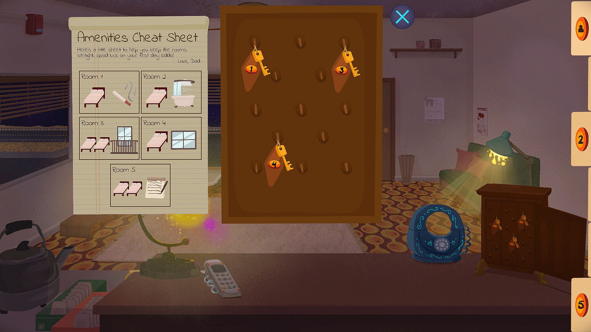 In this narrative-driven motel management game, you learn more about your customers’ lives as you check them in to your motel, managing bookings, amenity requests, and document validation. You must tend to the seemingly endless stream of customer service requests: bring your customers tea, coffee, or extra bedding, recommend restaurants, and cater to their every desire in order to maximize your customers’ satisfaction (and their Yup! scores).