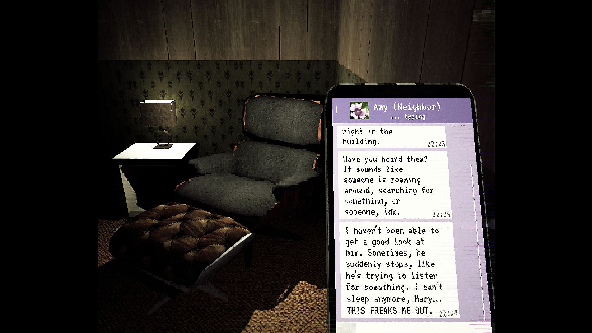 You play as Mary, who has just recently lost her husband, and needs to take care of her two children by herself. Suffering from insomnia, you wake up each night and experience strange events. Soon enough you'll find that there are some secrets you can't escape from.