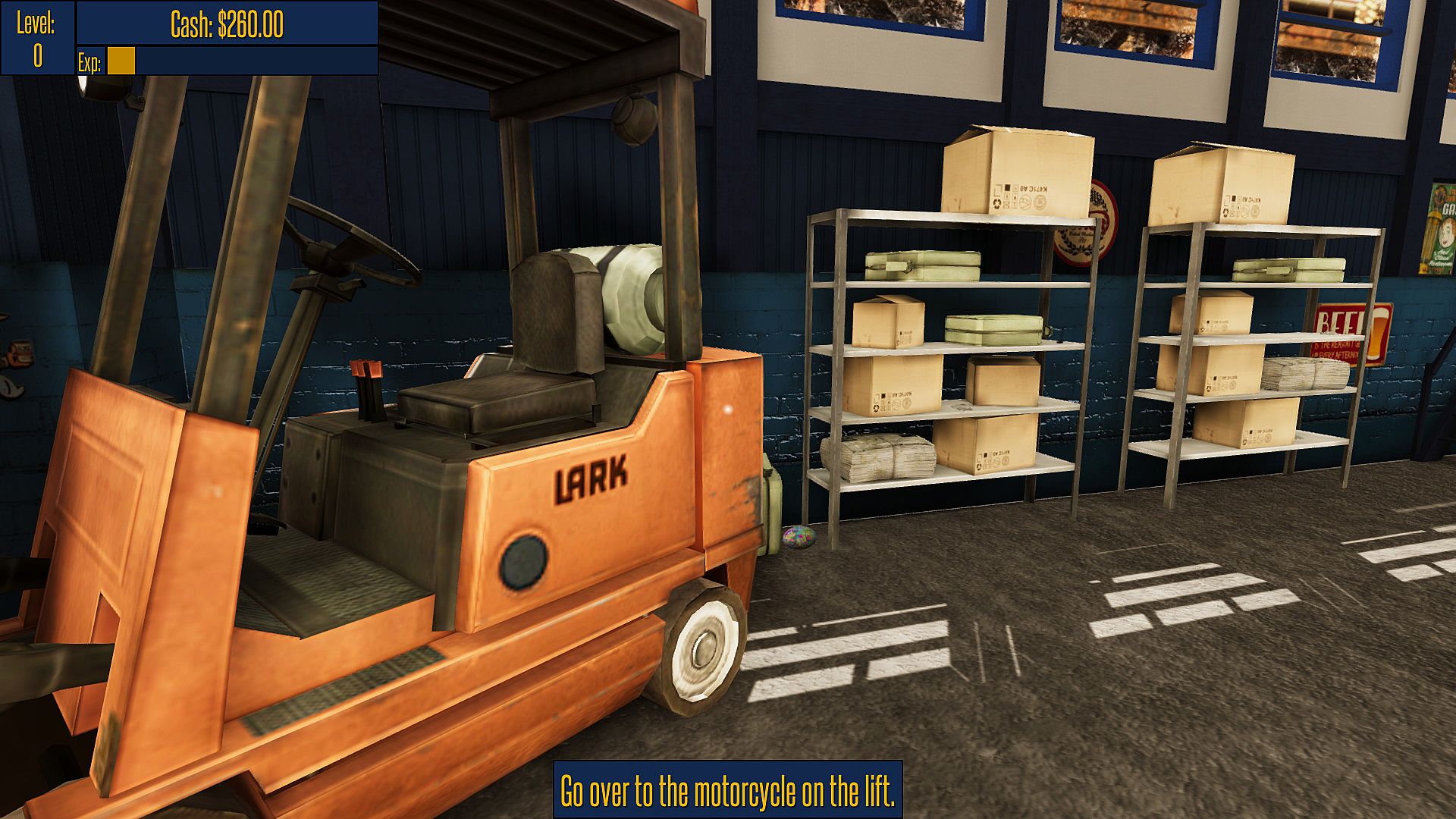 A realistic simulation of a chopper mechanic’s garage – you can almost smell the grease.