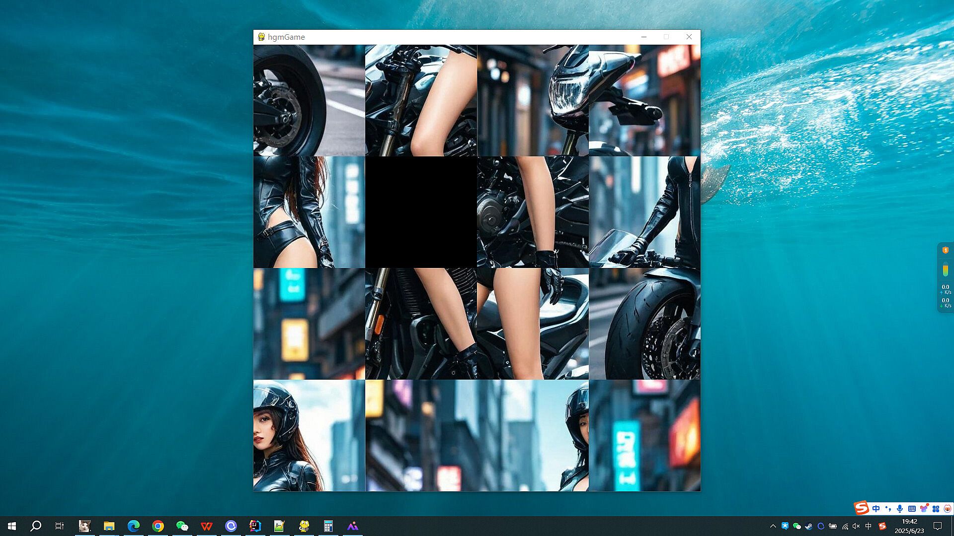 Game steps: Click the left mouse button on the image around the black square, and the image and black square will switch positions. The goal is to assemble all the small images into a complete image. The complete image is as follows: