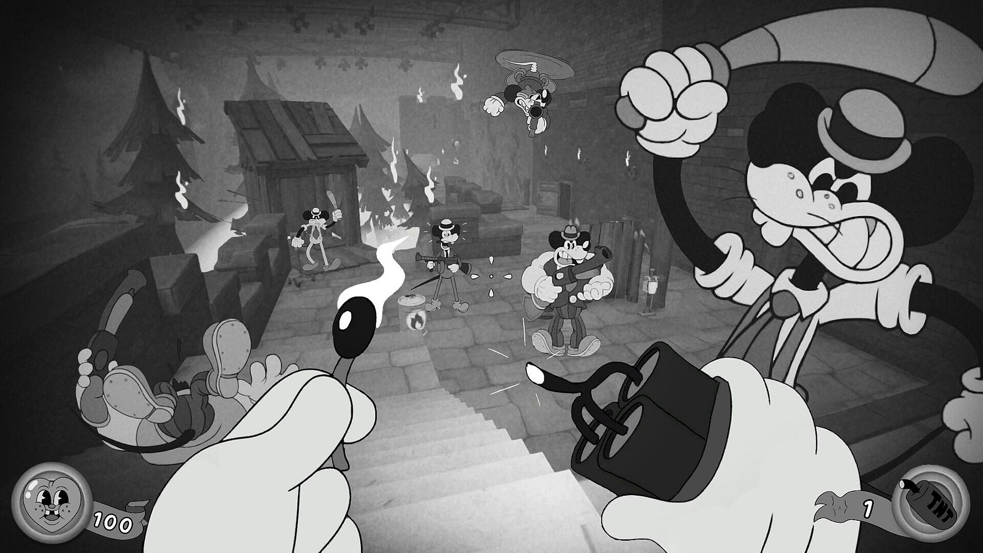 MOUSE: P.I. For Hire is an action-packed first-person shooter that draws inspiration from the classic cartoons of the 1930s. Its black and white rubber hose visuals are drawn by hand, frame by frame, delivering a striking vintage aesthetic. Unravel layers of corruption with a thrilling noir-fueled detective story, lively environments to explore, an original big band jazz soundtrack, and a fully-loaded arsenal of cartoon weapons and devastating power-ups.