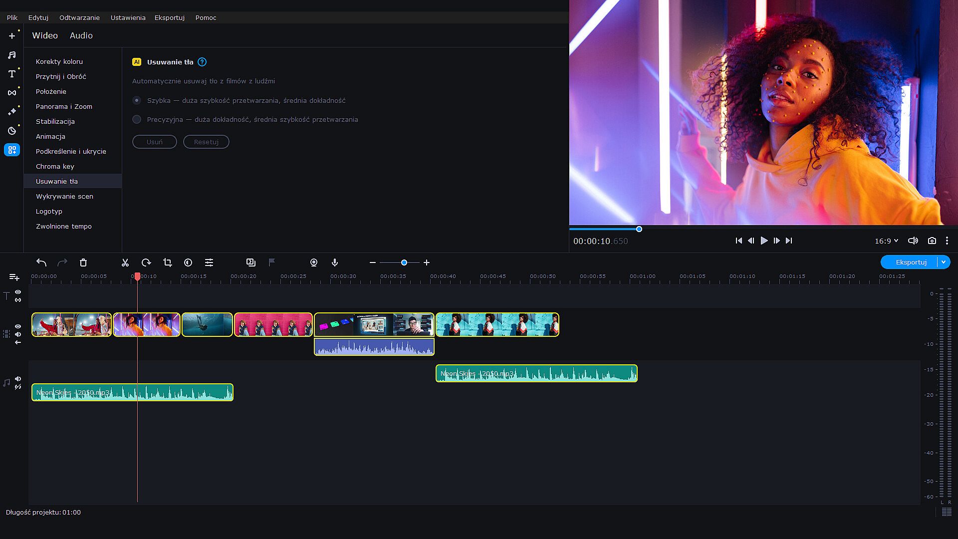 Let artificial intelligence do all the hard work: swap backgrounds even without green screens and remove uncool sounds from your videos.