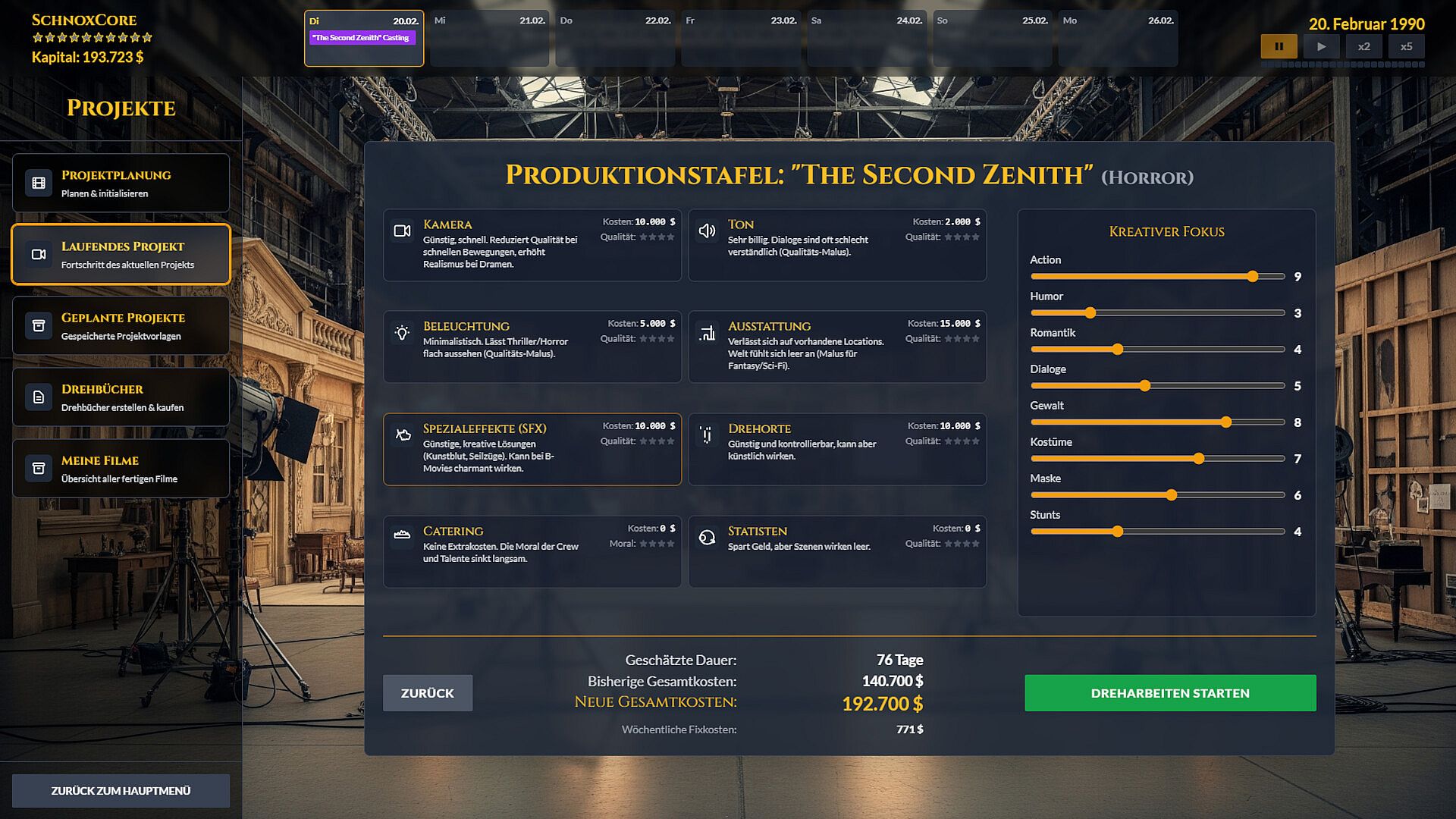 No two games are alike. A huge selection of random events – from world news and industry trends to unexpected problems on set – ensures constant challenges and unpredictable twists.