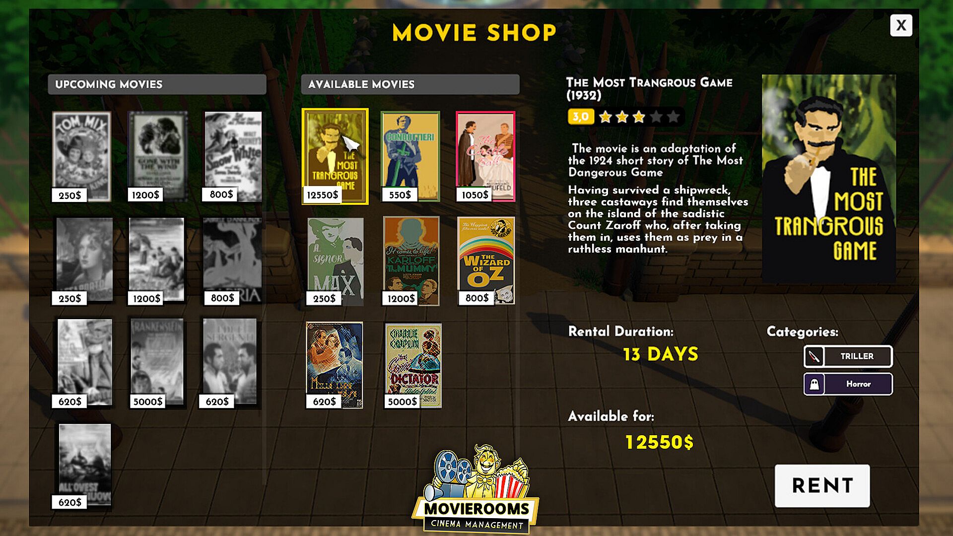 Before you start looking for a cheap Movierooms - Cinema Management CD Key, take a moment to check the essentials. Developed by Mad Pumpkins. Published by Mad Pumpkins. PC released date: Coming Soon. Genres: Strategy, Indie, Casual, Simulation. Categories: Family Sharing, Single-player.